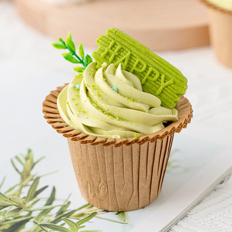 生日烘焙蛋糕装饰饼干绿色抹茶味造型花朵立体纸杯甜品摆件插件