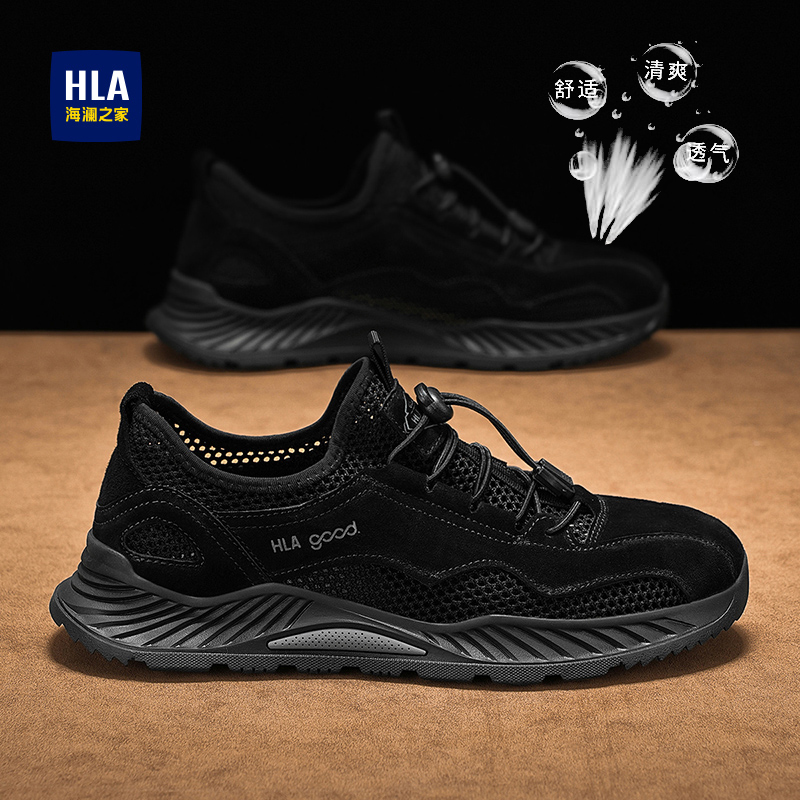 海澜之家网鞋男2025新款夏季透气薄款网面休闲运动鞋男士爸爸凉鞋