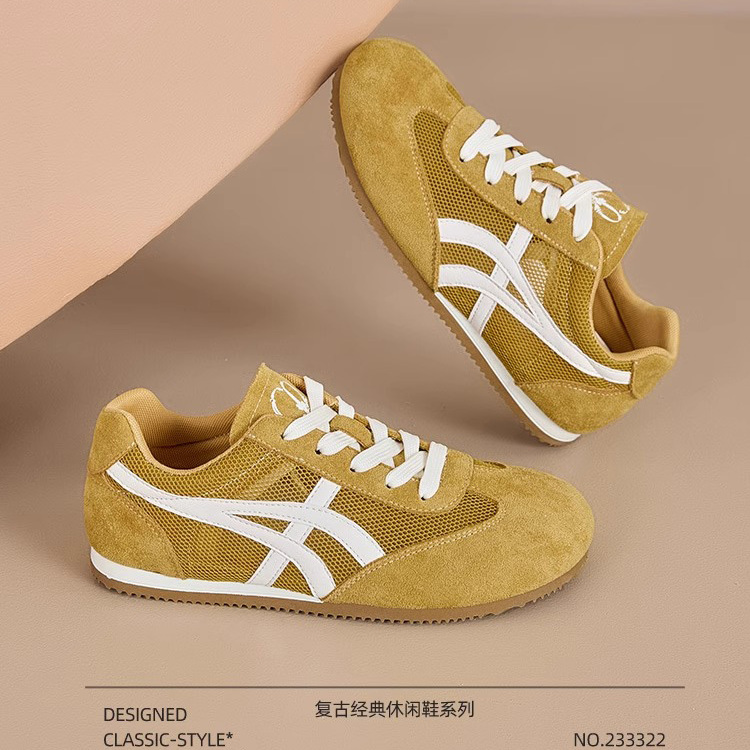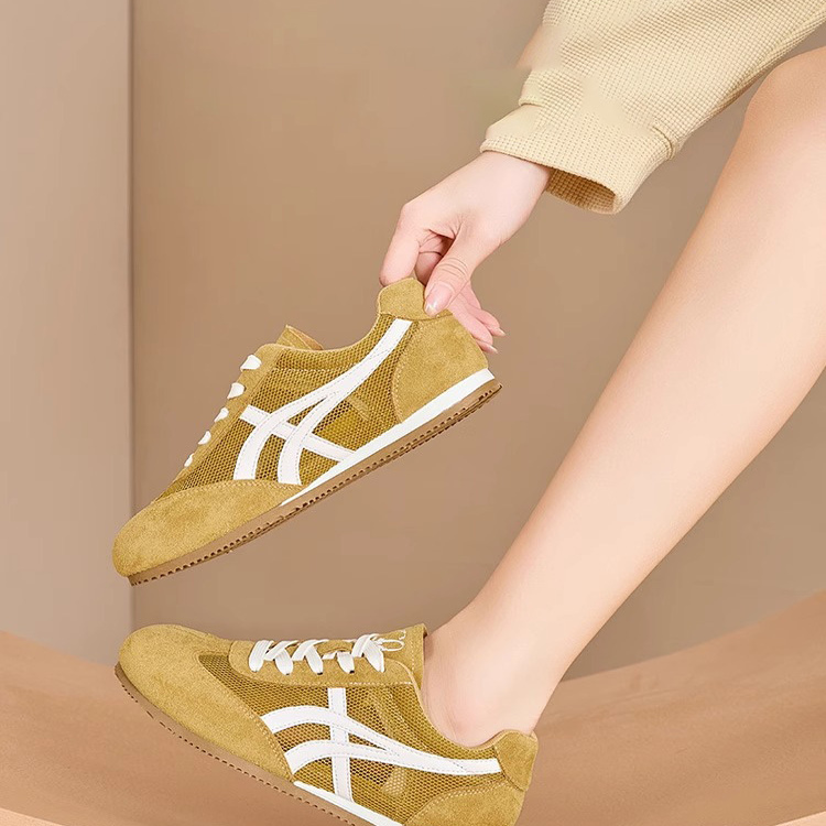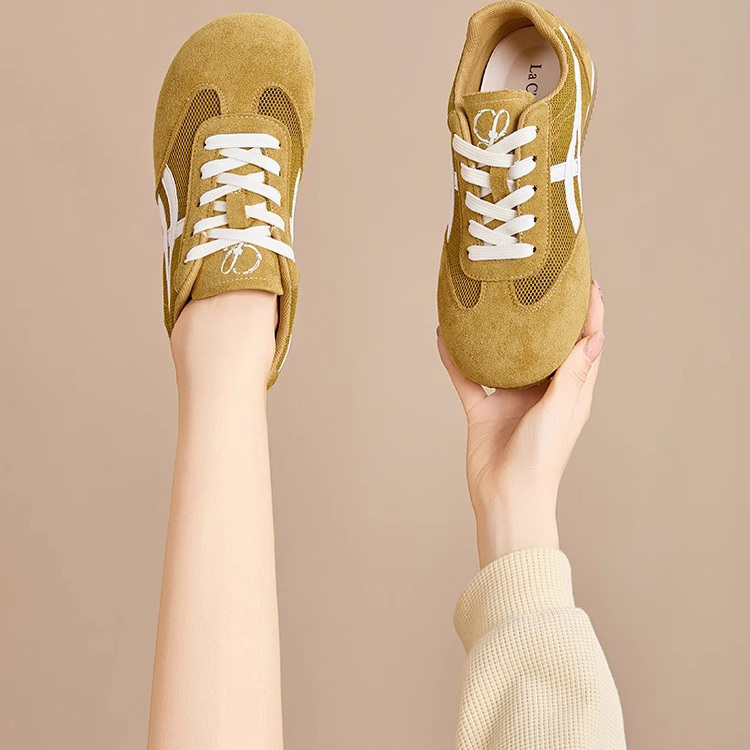 品牌黄色德训鞋女2025夏季新款休闲网面阿甘鞋百搭小众女鞋板鞋女