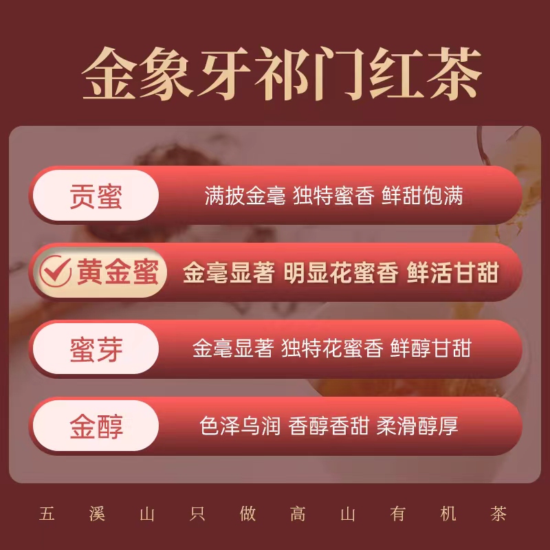 高端红茶茶叶有机祁门红茶高山茶特级黄金蜜罐装50g五溪山金象牙