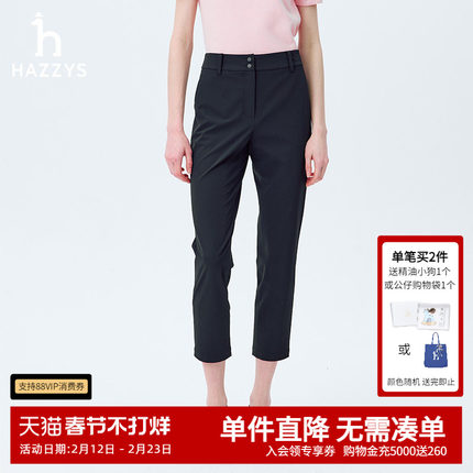 Hazzys哈吉斯春夏纯色休闲通勤九分裤女士轻薄直筒运动裤子下装潮