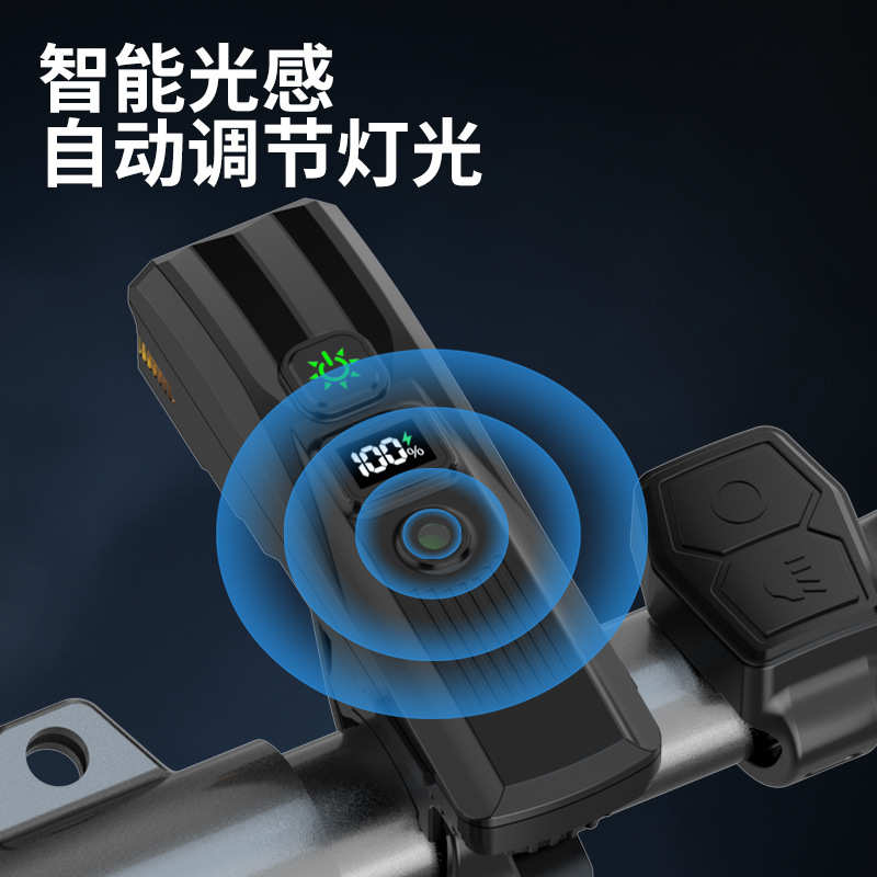 自行车灯数字电显儿童公路车夜间骑行灯带喇叭USB充电光感前灯
