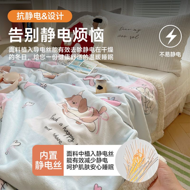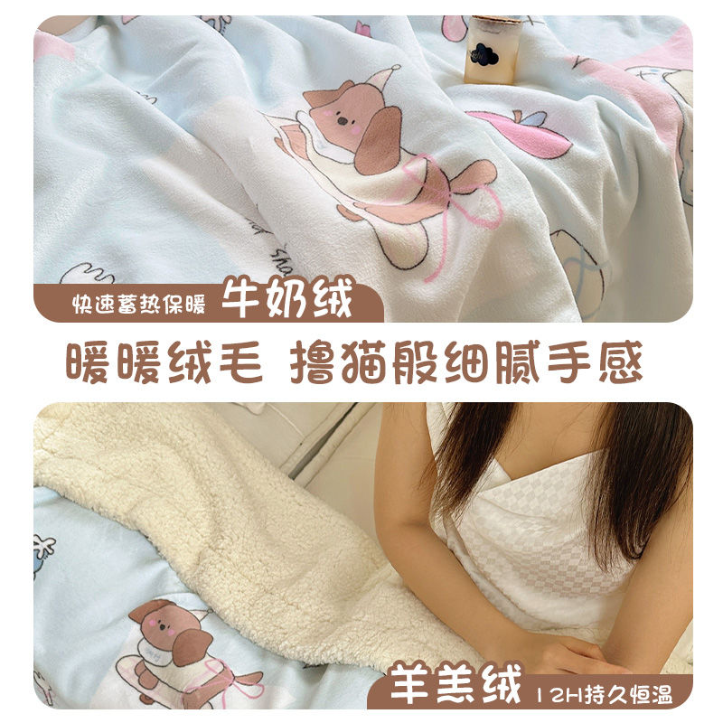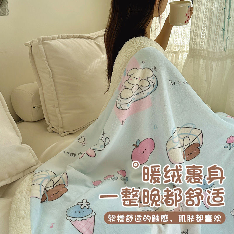 ABS冬季羊羔绒毛毯卡通加厚盖毯珊瑚绒牛奶绒办公室午睡沙发毯子