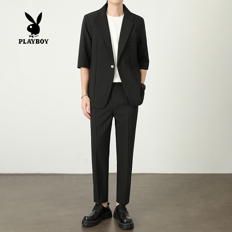 七分袖西服套装男长裤搭配秋薄款成人礼衣服新款两件套主持人西装