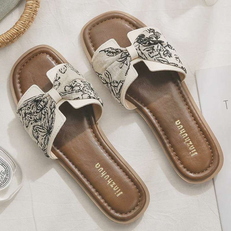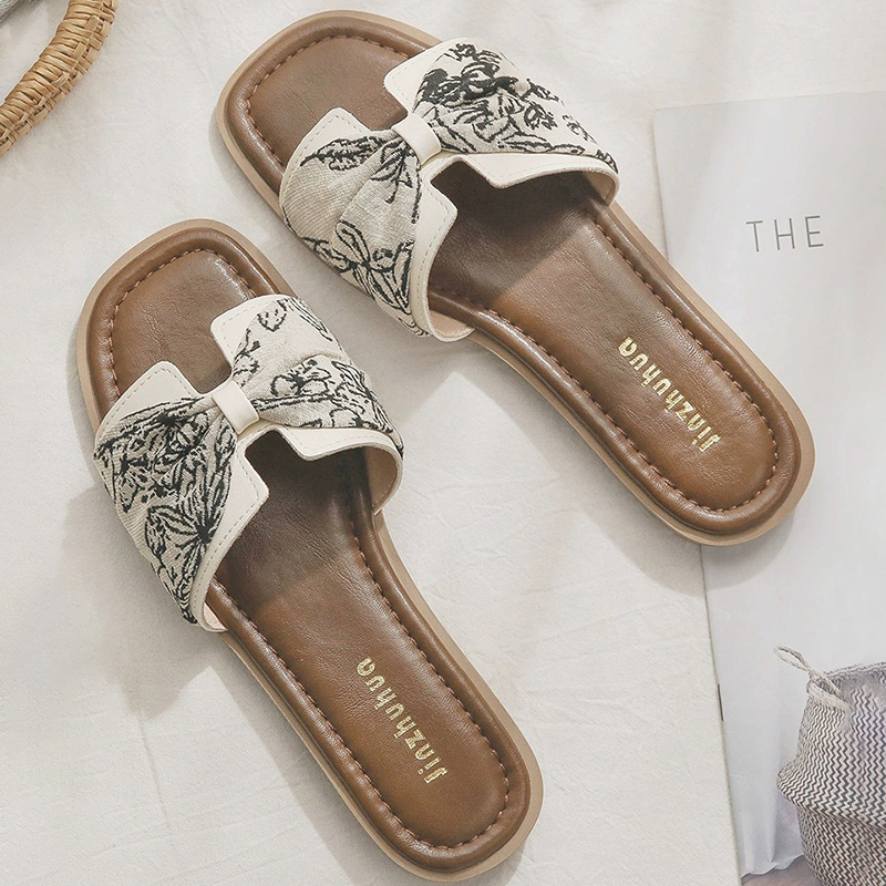 软皮版~绝美法式平底配裙子外出小凉拖鞋女2025新款夏季外穿时尚
