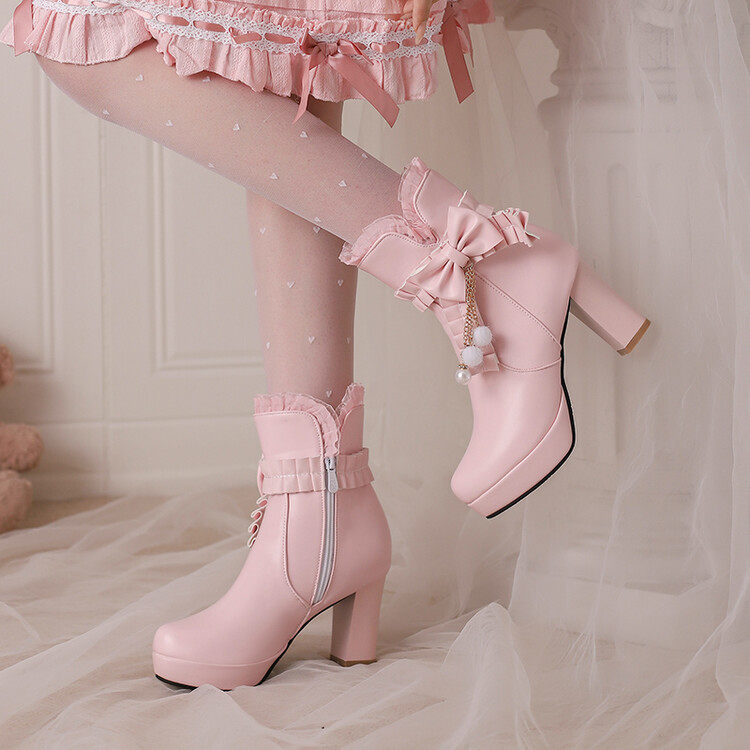 秋冬新款马丁靴女短筒靴女士百搭女鞋侧拉链高跟女靴甜美粗跟短靴