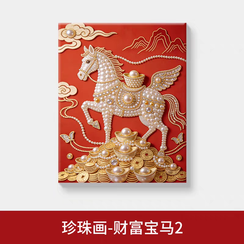 新年礼物中式珍珠财富骏马油画布DIY儿童手工粘画高颜值装饰画