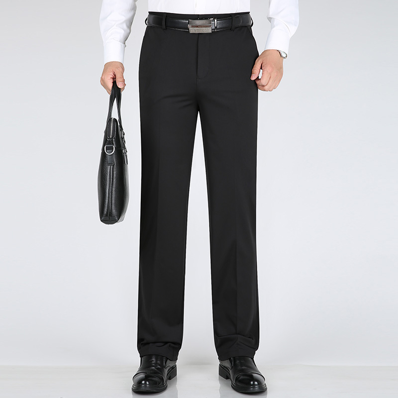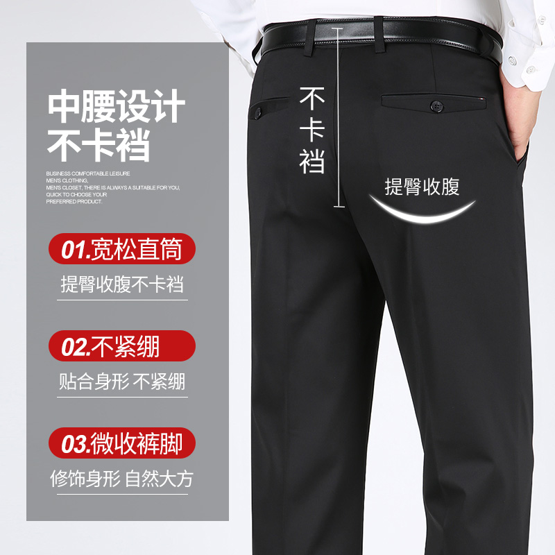 夏季薄款男西裤大码宽松弹力高腰深裆加肥加大黑色商务休闲西装裤