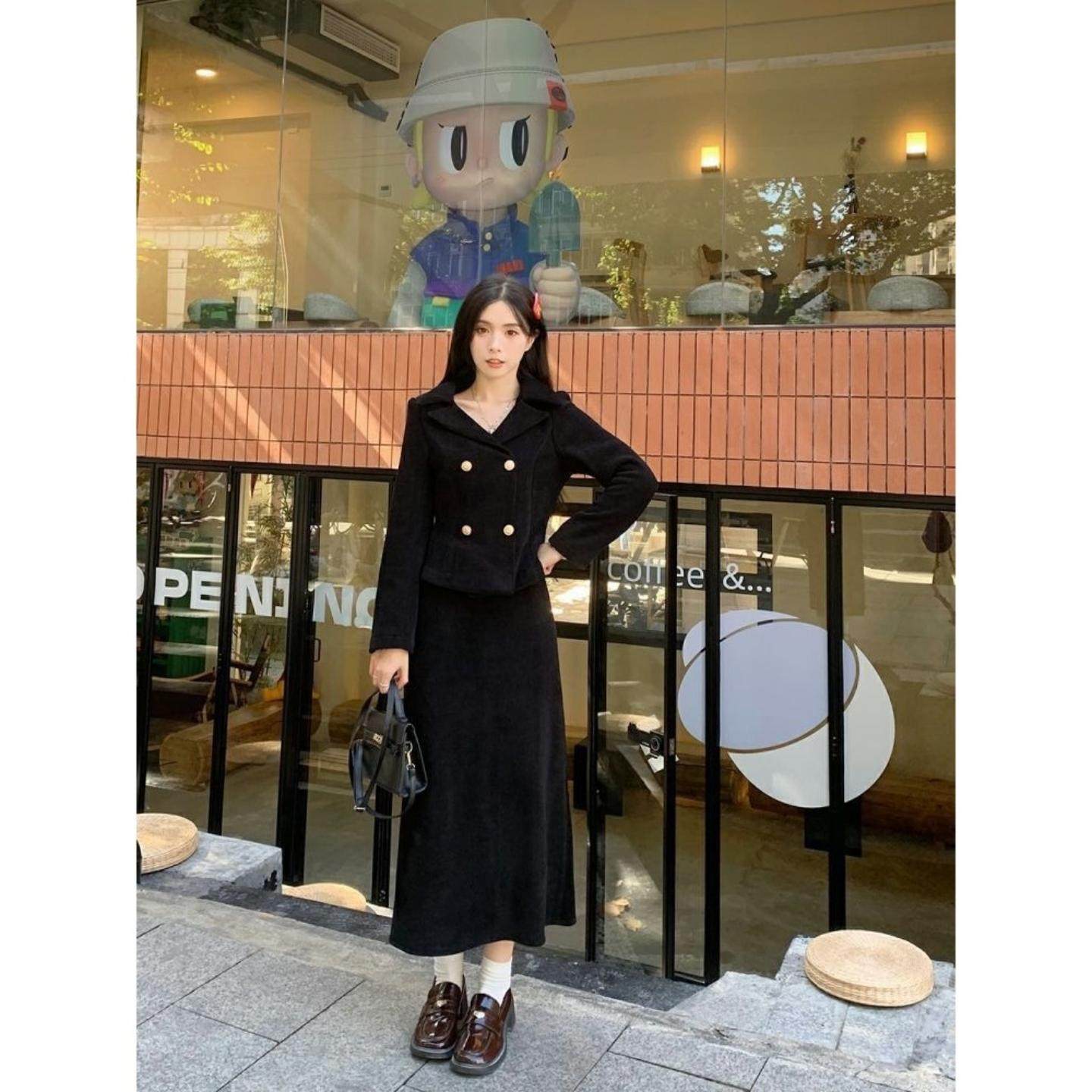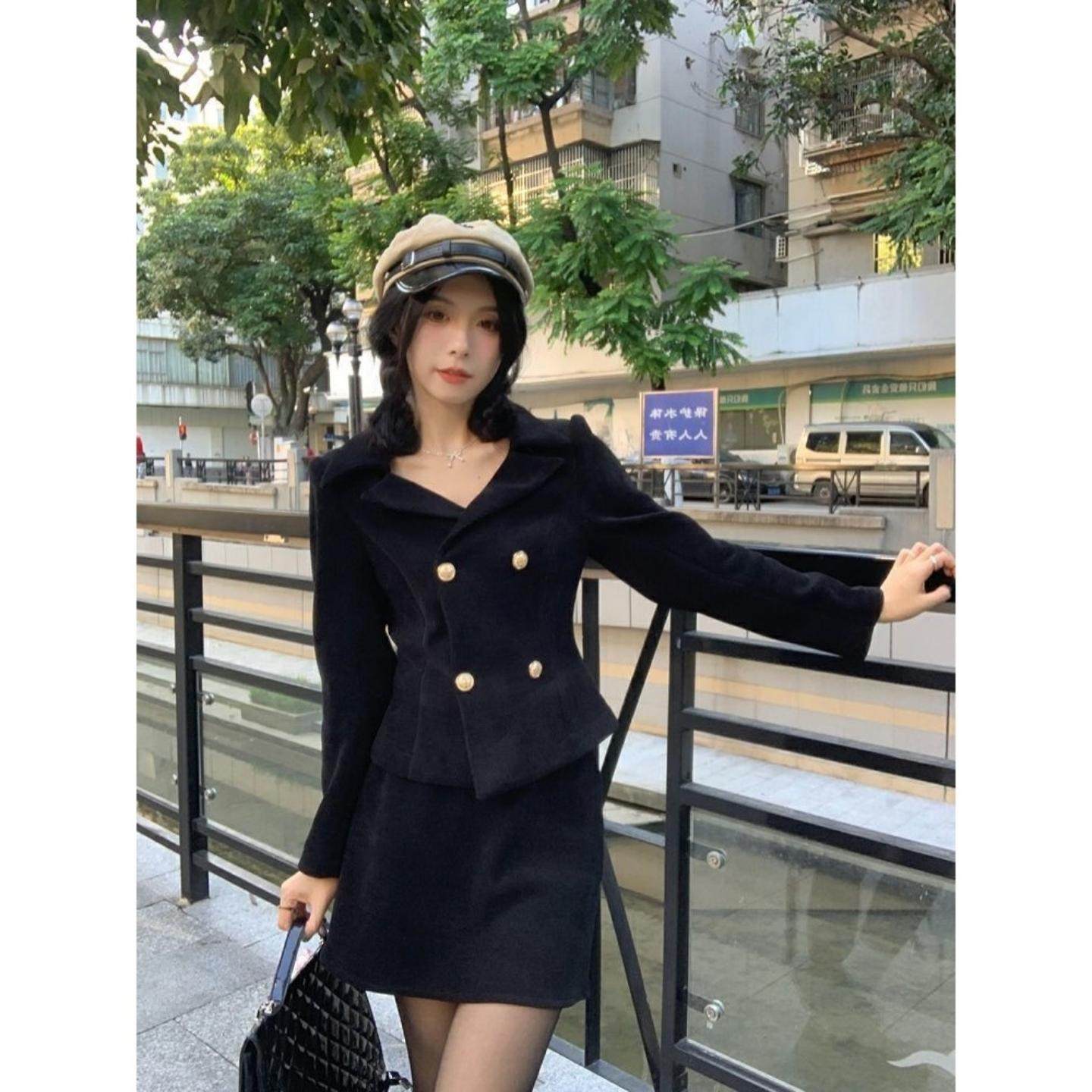 大码冬季新款胖mm显瘦西装外套半身裙两件套加绒御姐风显瘦套装女
