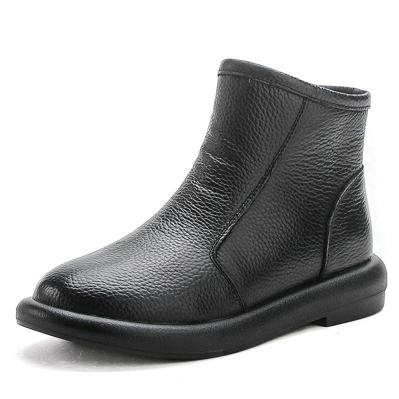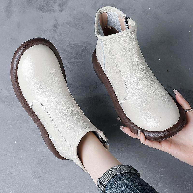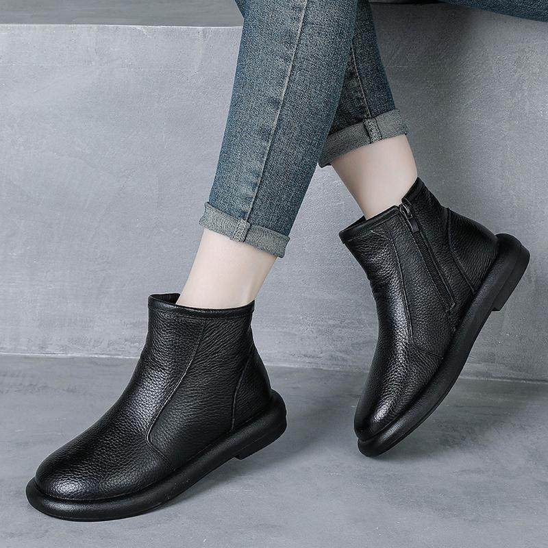 头层牛皮秋冬季新款低跟马丁靴复古女鞋真皮靴子女短靴圆头妈妈靴