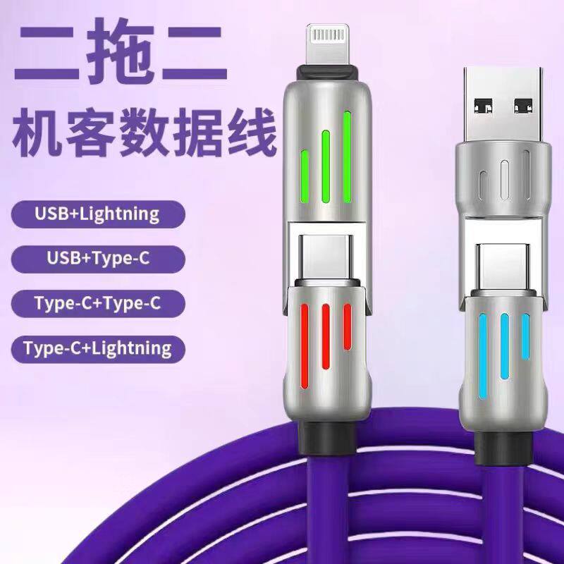 二拖二数据线四合一拖四300W快充适用苹果华为荣耀畅享小米VIVOP车载手机平板电脑通用多功能加长2米闪充电线