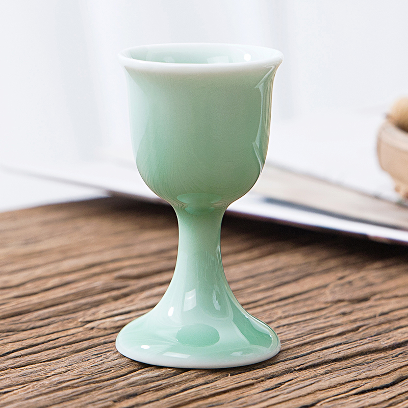 陶瓷仿古高脚杯白酒杯清酒杯黄酒杯烈酒杯青瓷小酒盅家用酒具套装