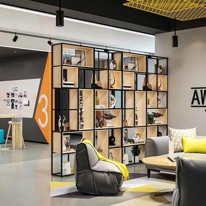 铁艺书架落地隔断置物架办公室屏风书柜展示架餐客厅收纳实木简约