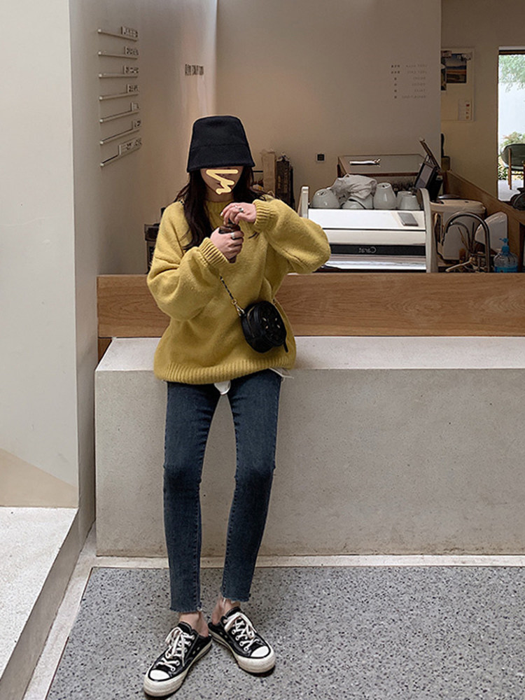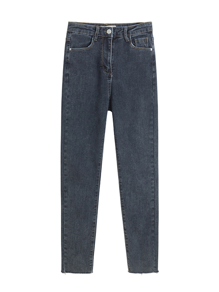 145七分加绒加厚牛仔裤女小个子秋冬韩版高腰弹力紧身八分小脚裤9