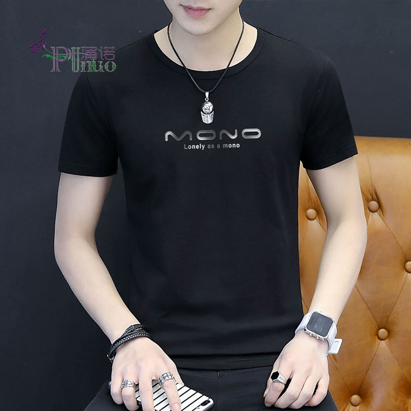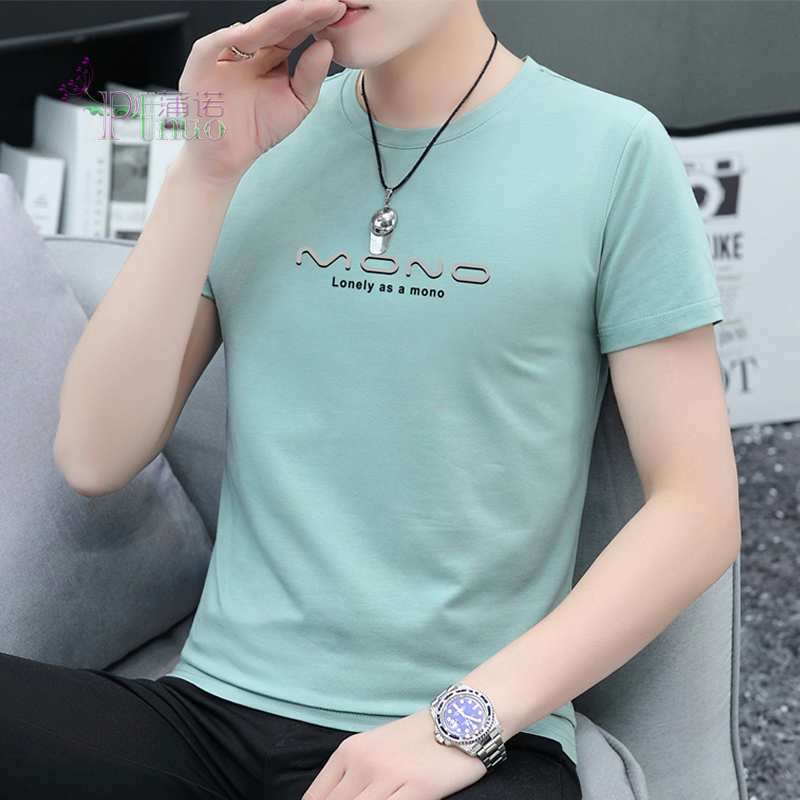 2025青年夏季纯棉短袖t恤男士圆领字母打底衫潮休闲印花薄款上衣