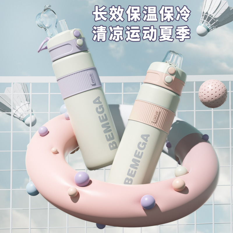 英国Bemega保温杯大容量女男带吸管2025新款高颜值便携运动水杯子