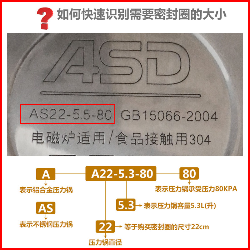 爱仕达高压锅密封圈原装配件正品 18/20/22/CM 压力锅硅胶圈皮圈