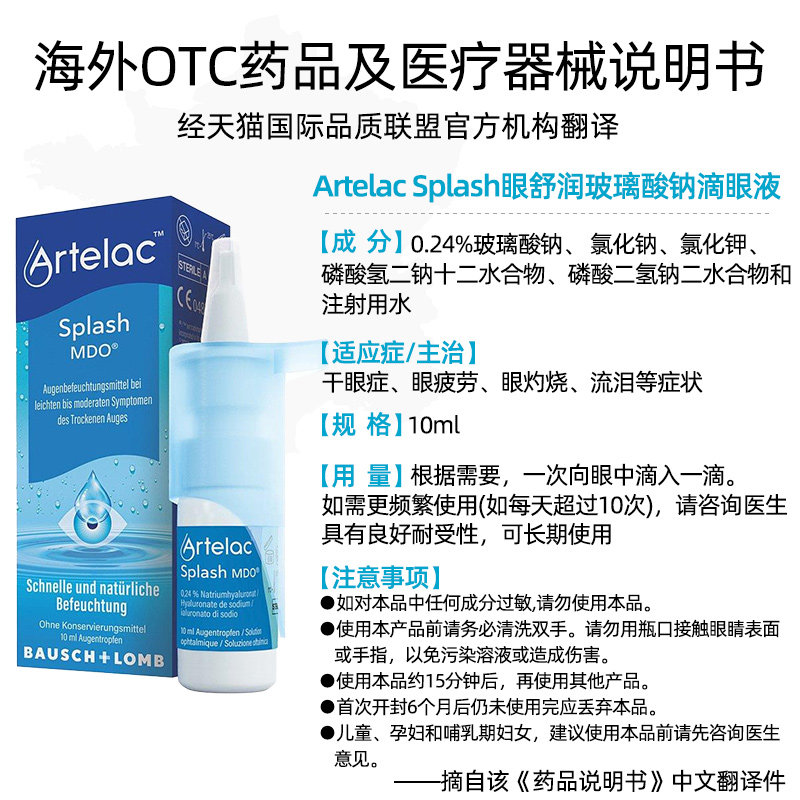 Artelac博士伦眼药水人工泪液干