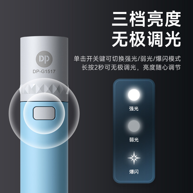 DP久量手电筒强光超亮可充电超长续航家用户外远射便携多功能手电
