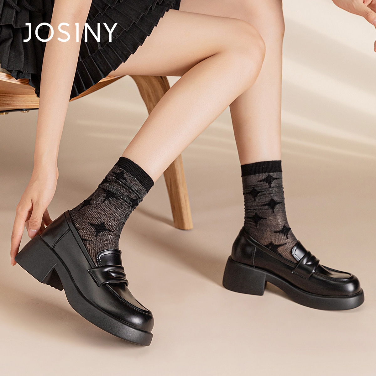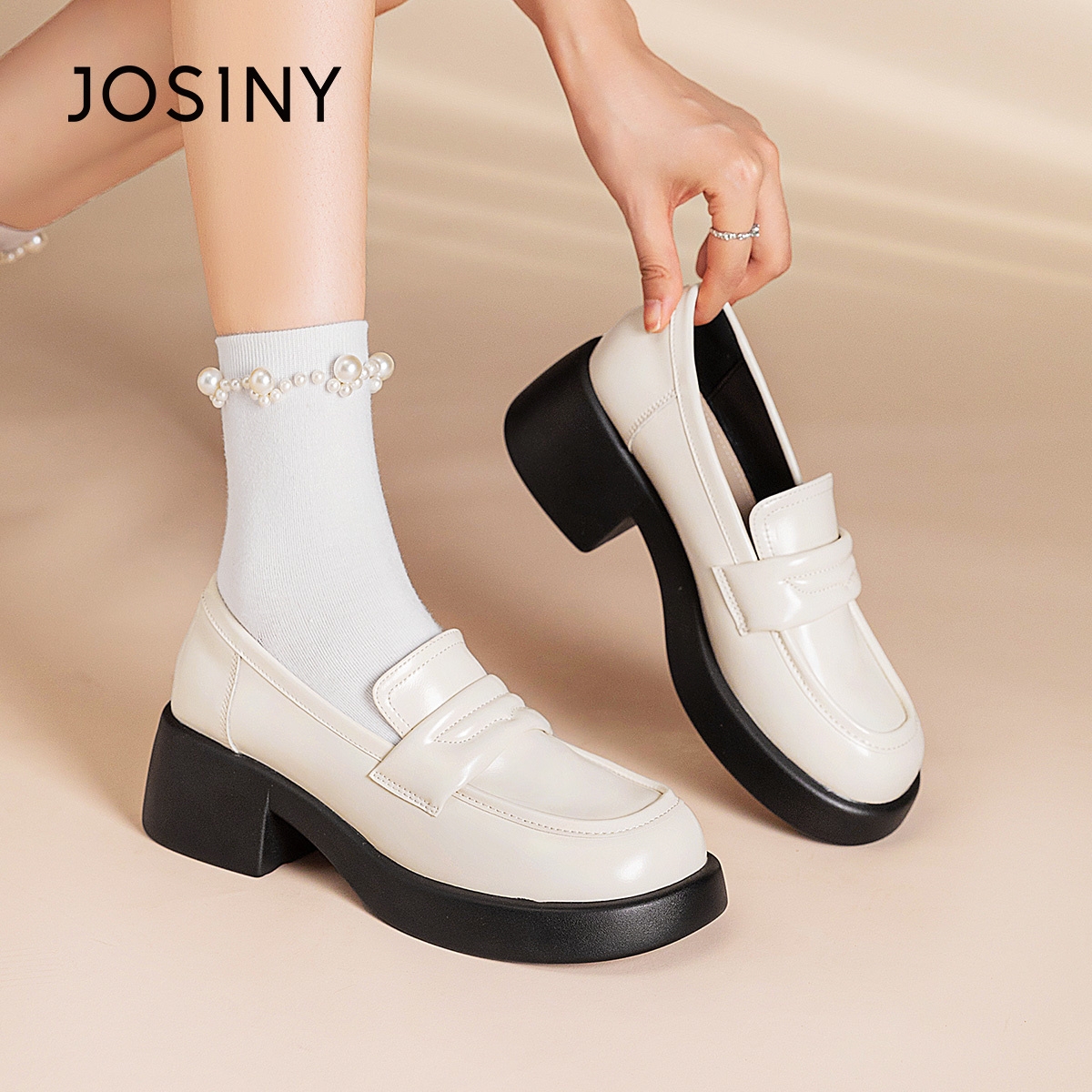 卓诗尼乐福鞋女款2024新款夏季厚底女鞋一脚蹬豆豆鞋软底小皮鞋子