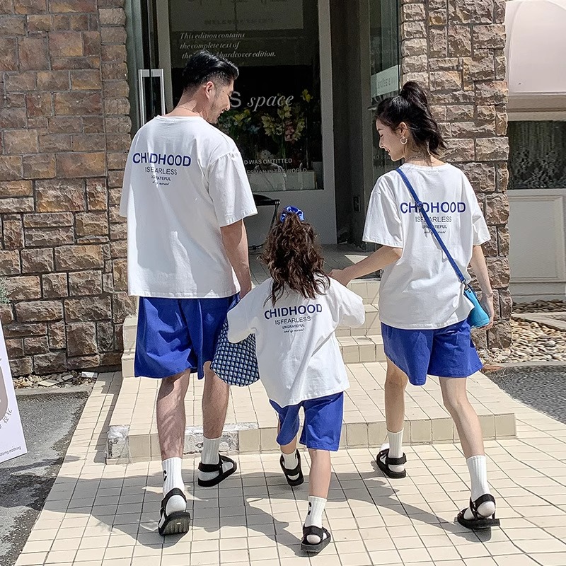 炸街亲子装一家三口夏装2024新款宽松洋气高端母子母女装短袖套装