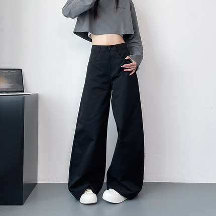 微喇叭阔腿裤女早秋大码胖mm高腰直筒西装裤显瘦宽松拖地休闲长裤