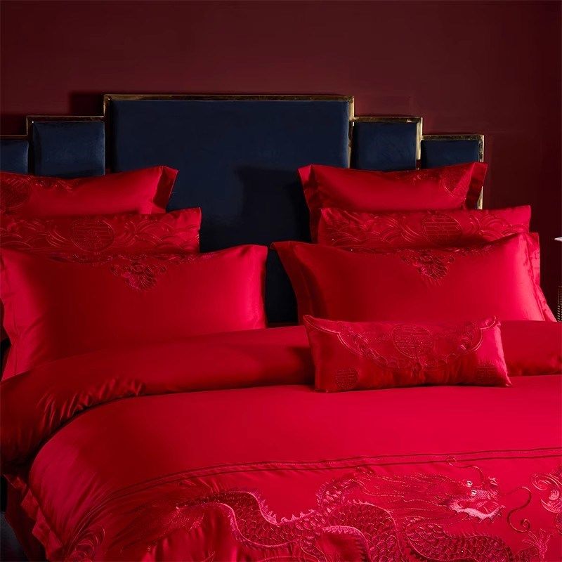 婚礼四件套婚被婚嫁红色床单重工艺床上用品被罩婚庆刺绣中式