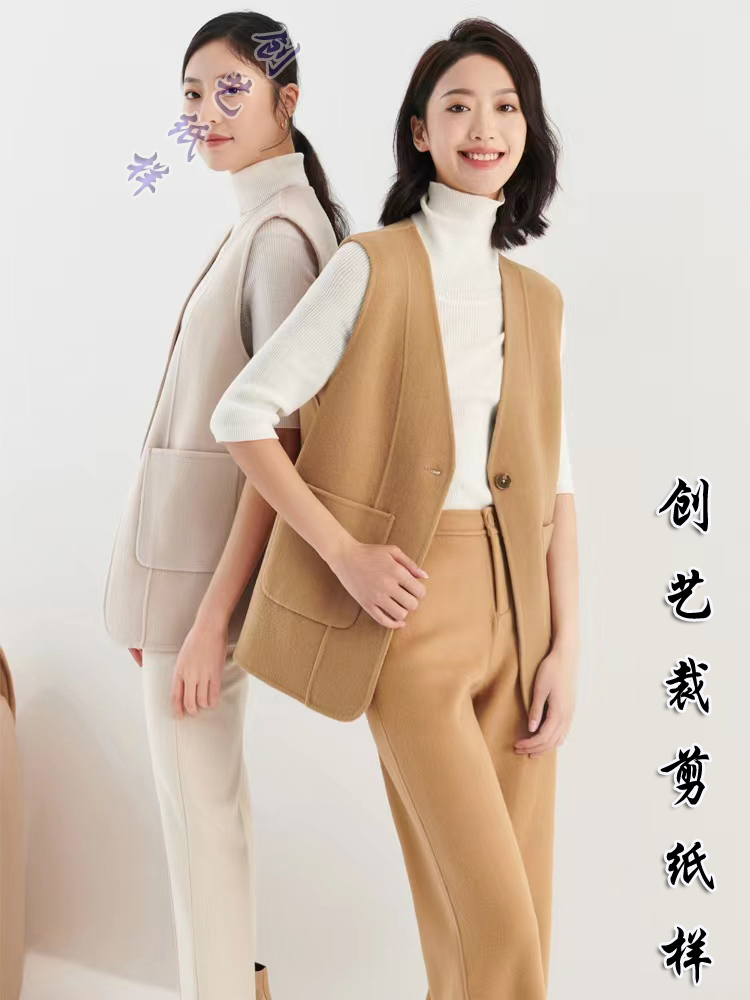 纸样裁剪图 N83马甲女双面羊绒马夹女士羊毛背心坎肩外套服装样板