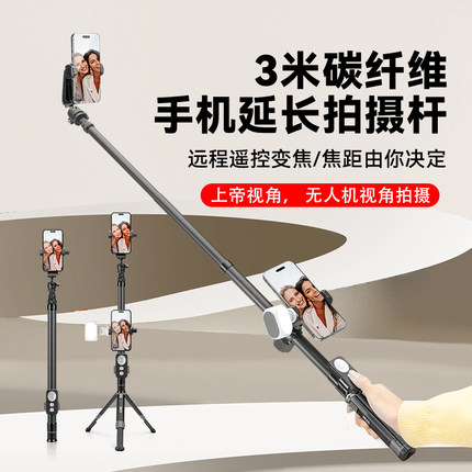 3米超长手机手持自拍杆便携旅游出行专用延长杆通用落地三脚架蓝牙变焦遥控一体支架模仿无人机高空创意杆