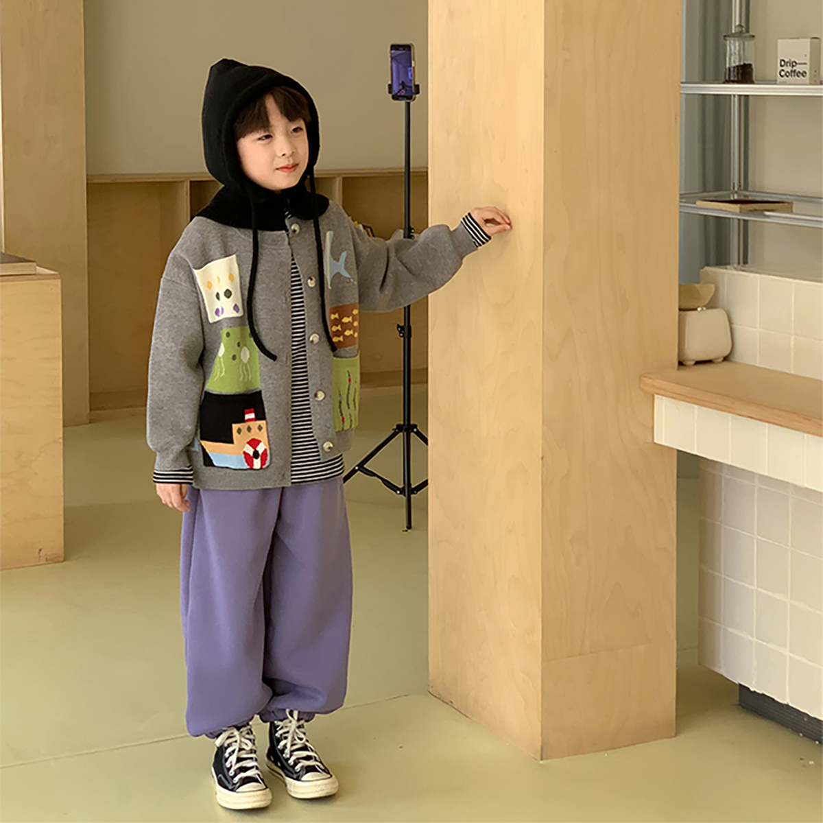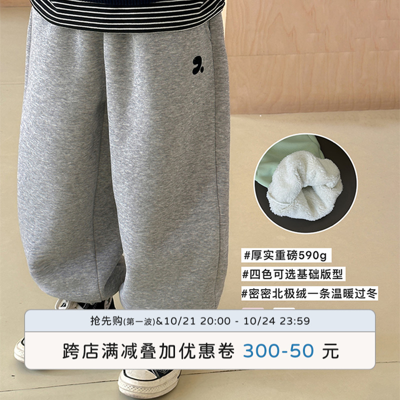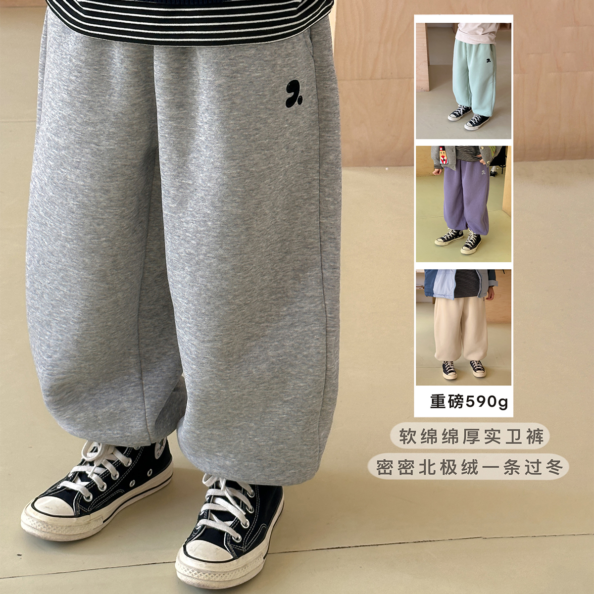 虾酱麻麻男童冬季休闲裤2024新款男孩束脚卫裤中大童宽松加绒长裤