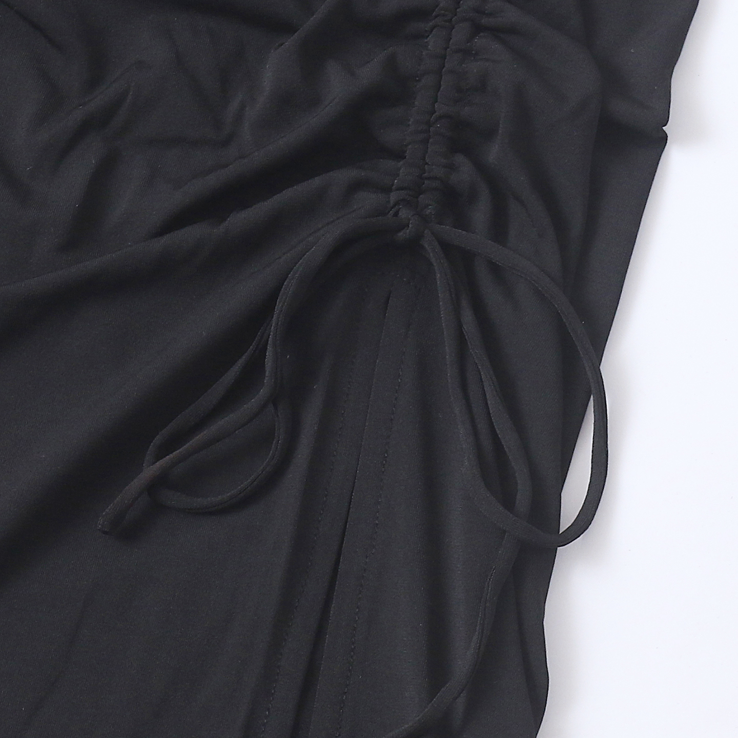 抽褶系带开叉半身裙 夏季新款外贸女自然松紧腰纯色弹力包臀32838
