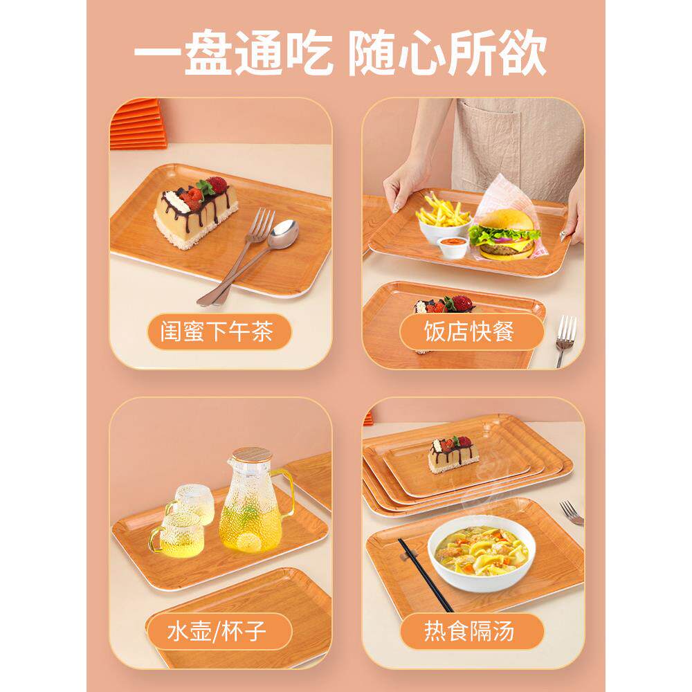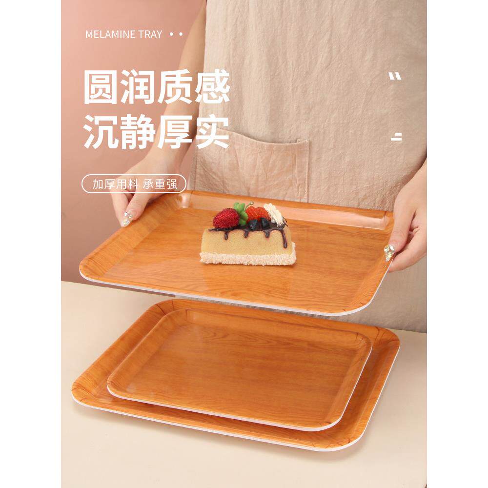 木纹三聚氰胺托盘矩形家用储物盘餐盘水杯茶盘水果盘蛋糕甜点咖啡