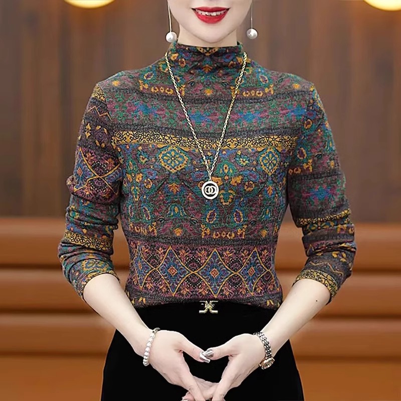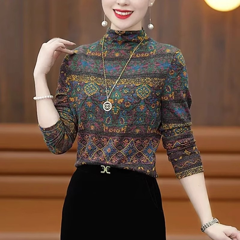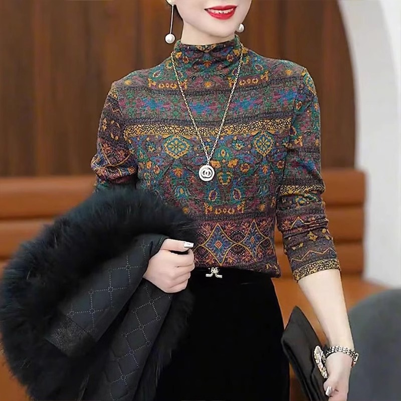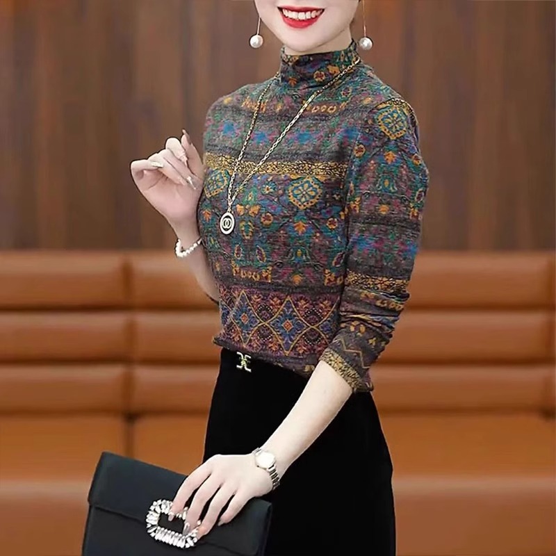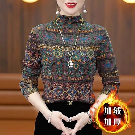 半高领条纹长袖打底衫女2024年秋冬季新款加绒修身内搭洋气上衣潮
