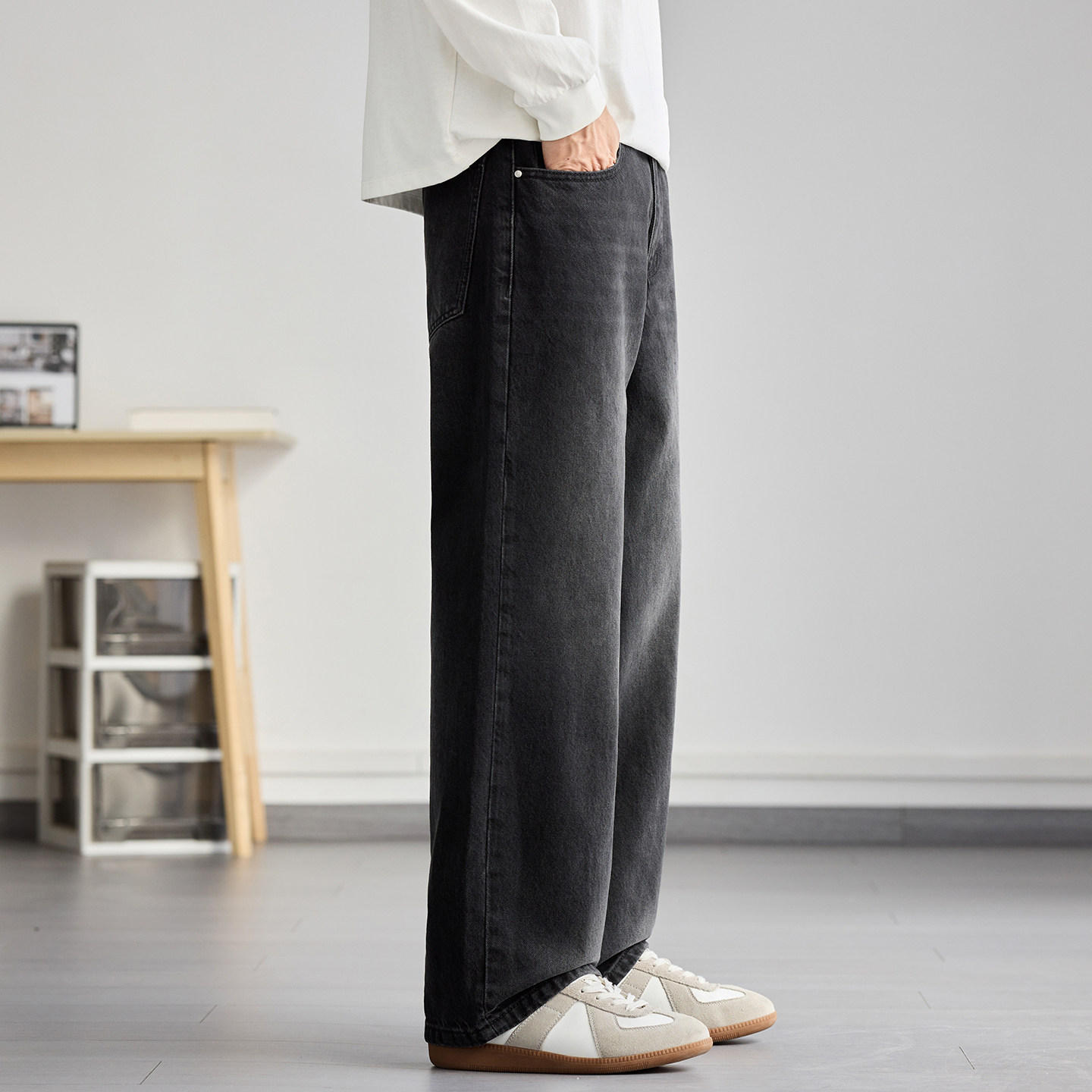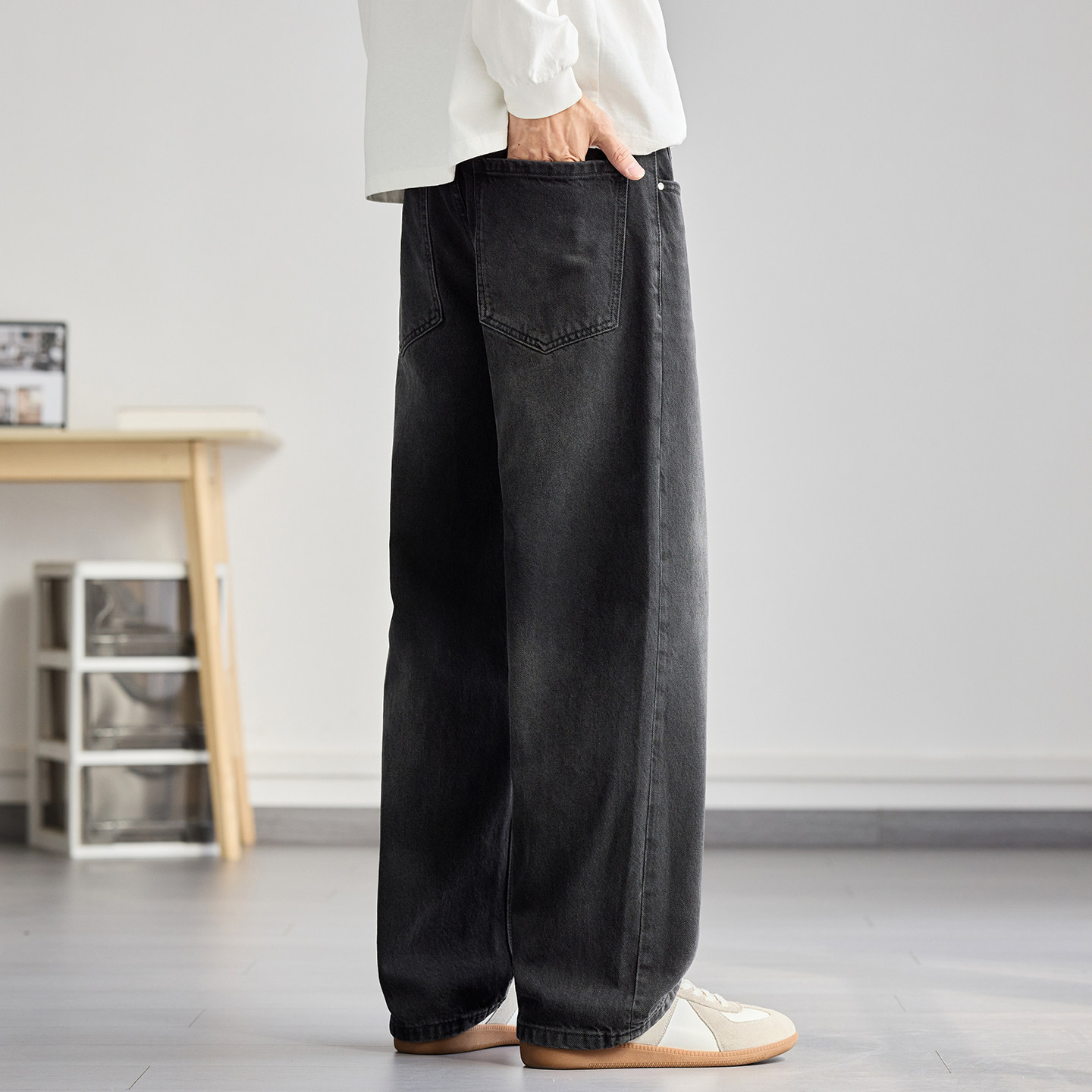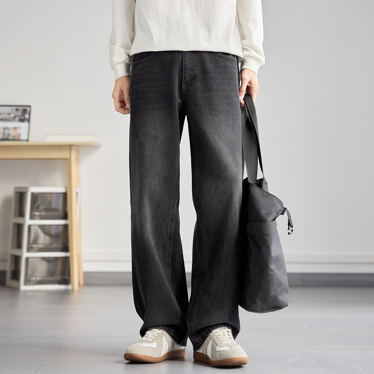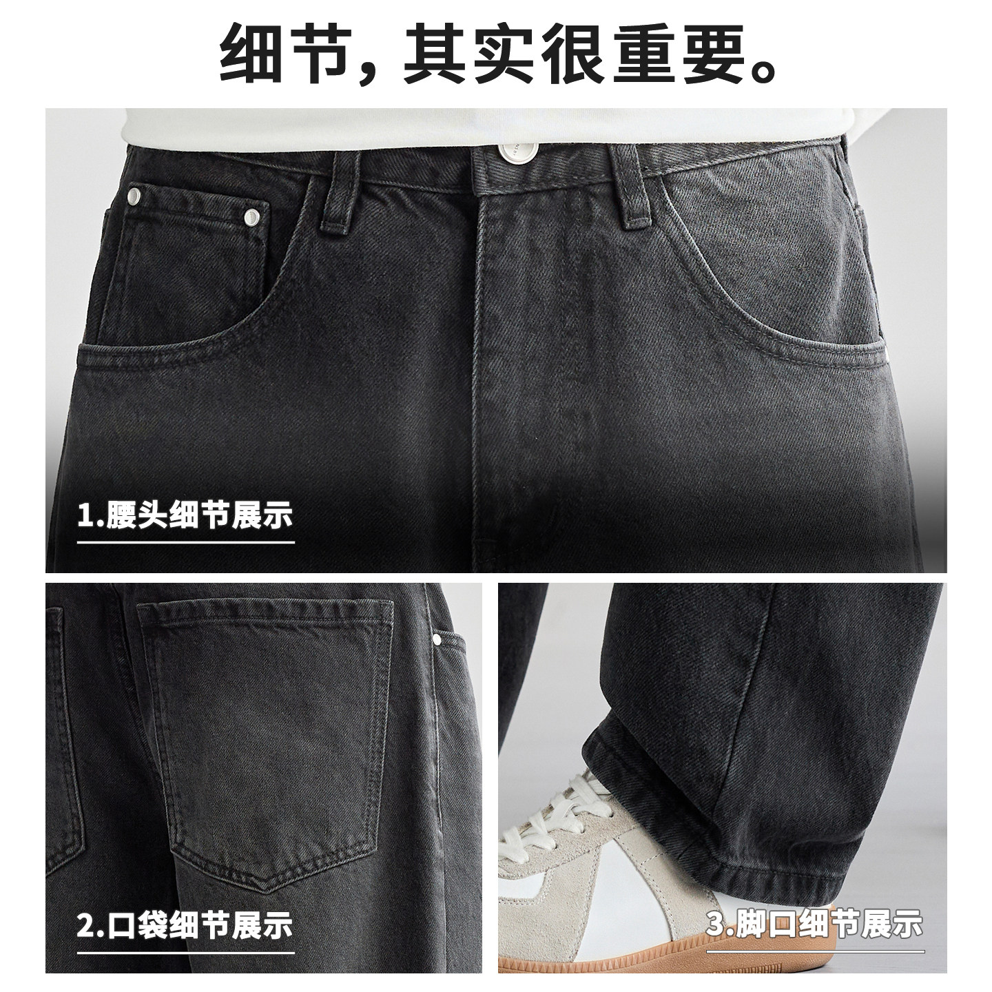 460g竹节棉直筒牛仔裤男士2025秋冬季新款宽松大码复古黑色长裤子