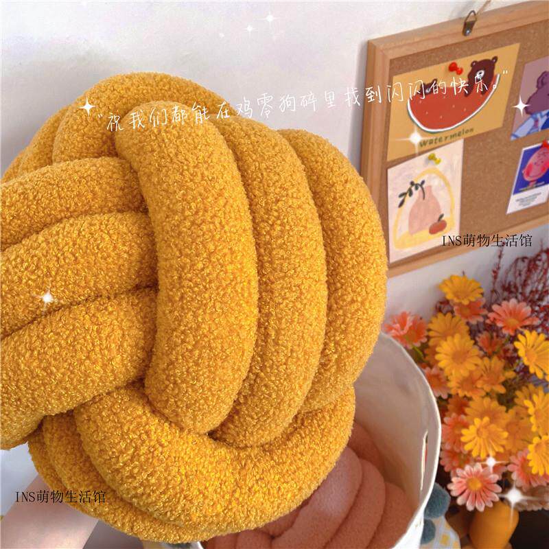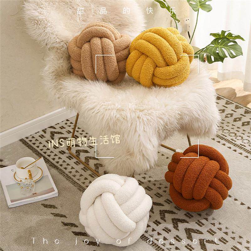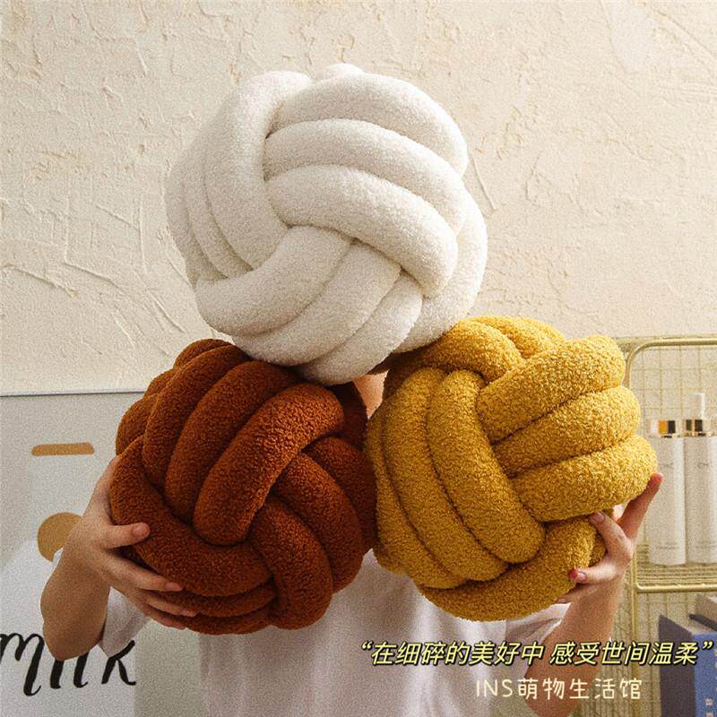 ins风北欧沙发客厅床头靠垫打结编织创意麻花球形民宿羊羔绒抱枕