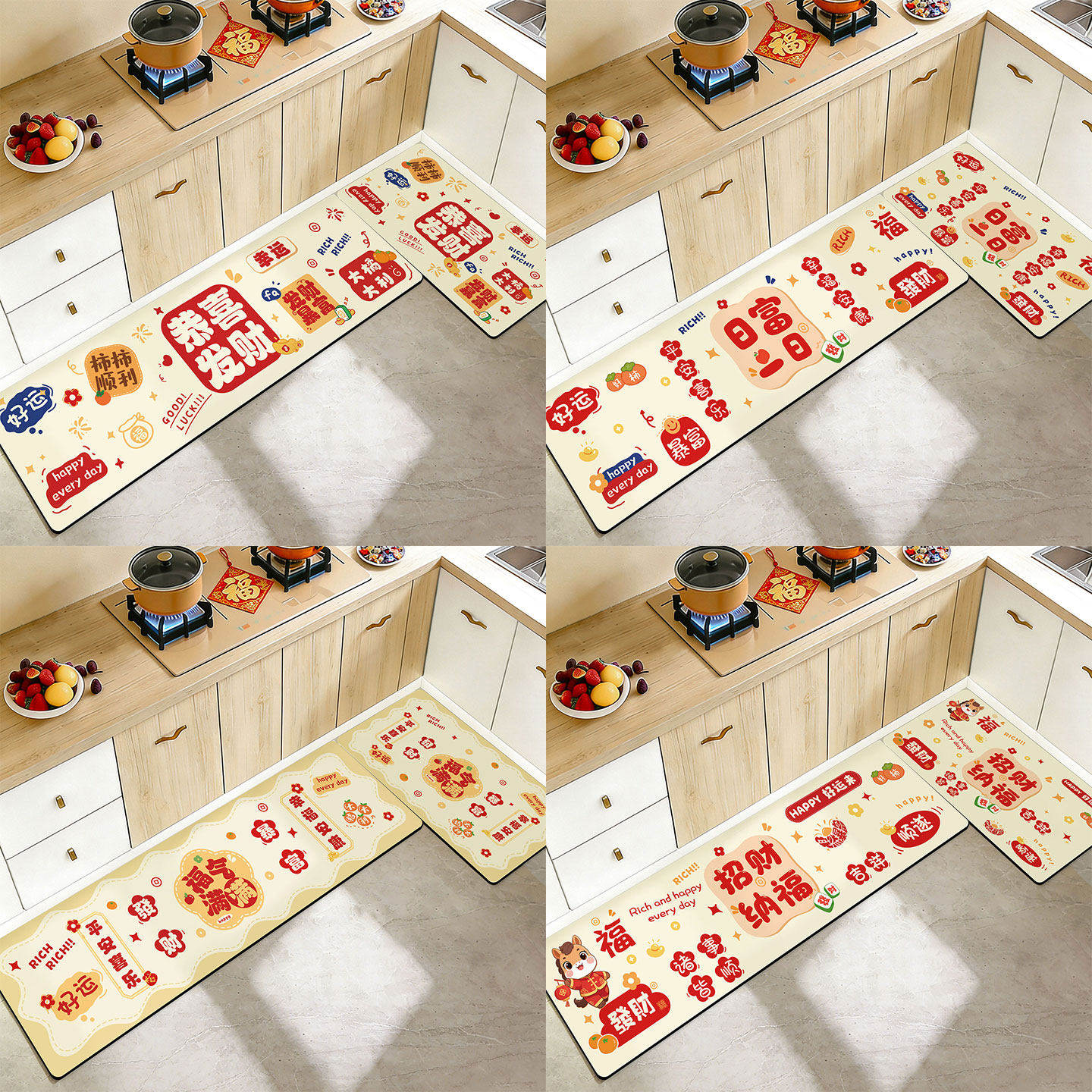 红色喜庆防滑厨房专用地垫吸油耐脏硅藻泥吸水速干脚垫新年地毯