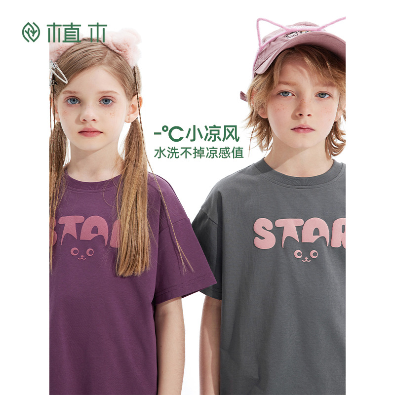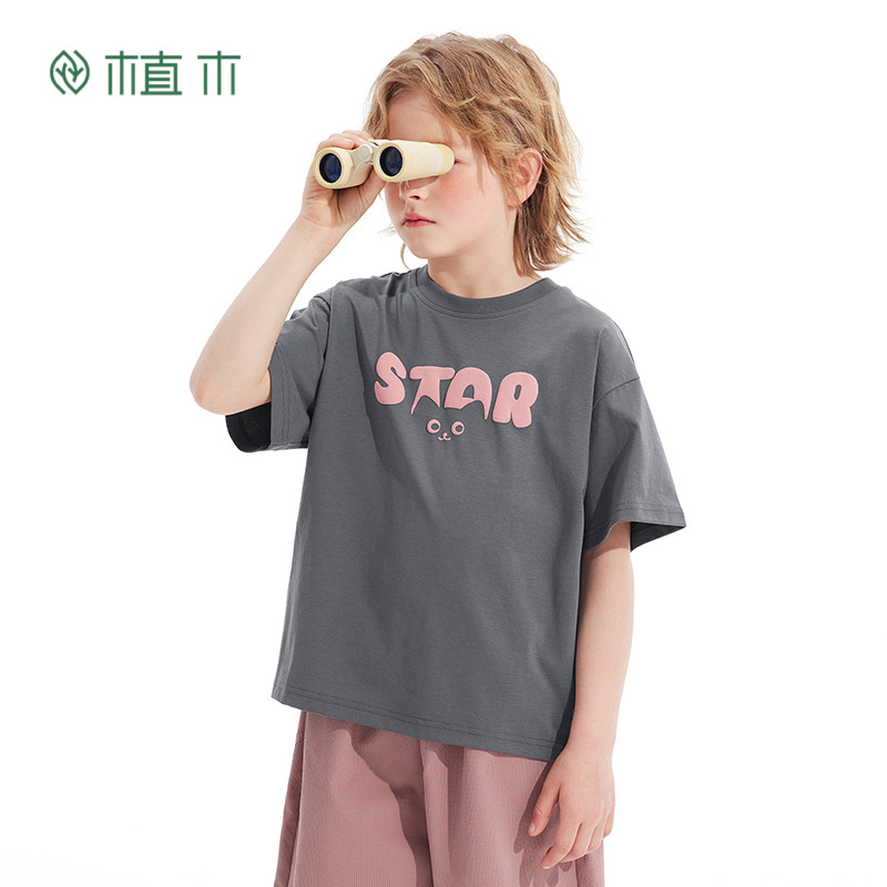 植木童装男童女童T恤2025夏季新款中大童小猫休闲速干上衣儿童T恤