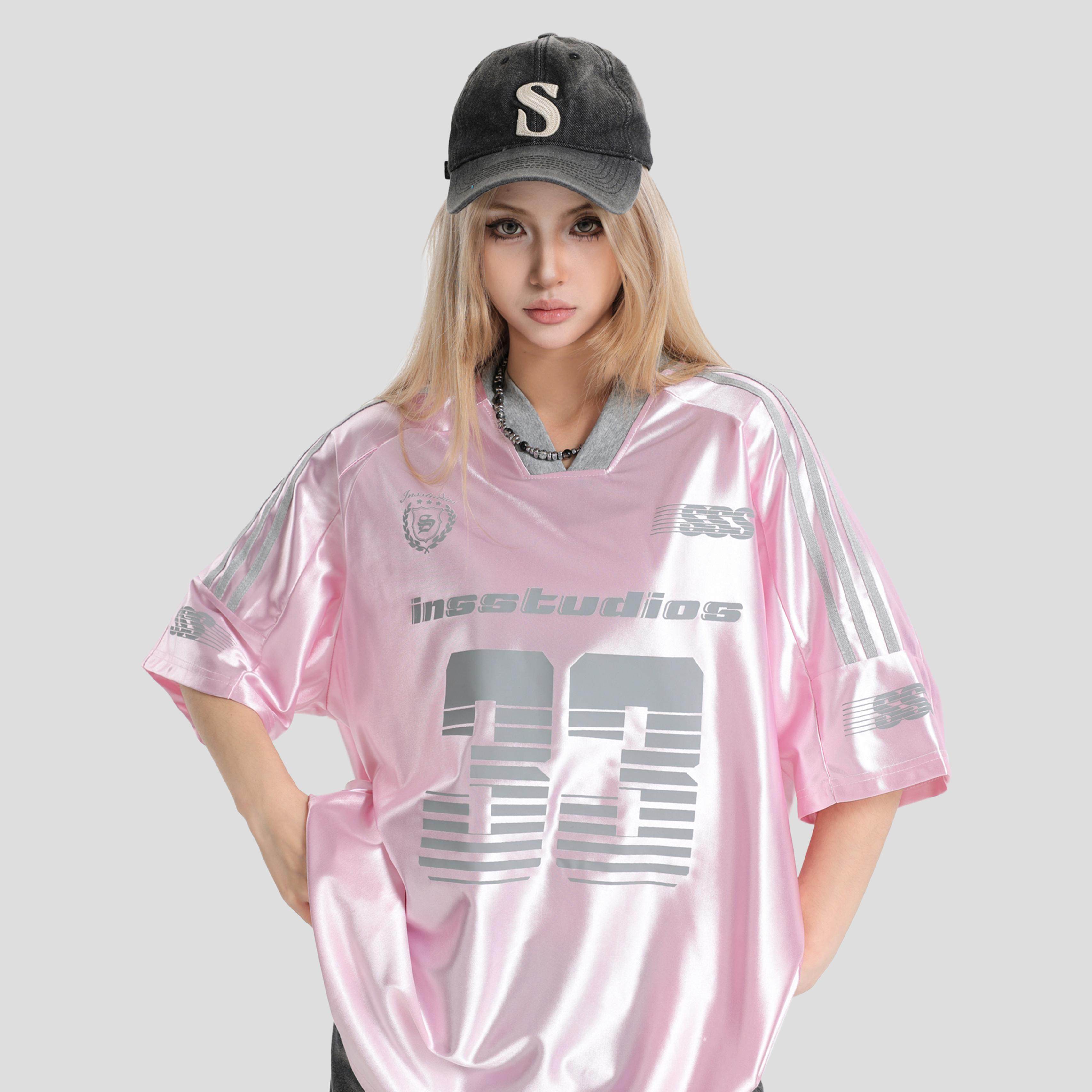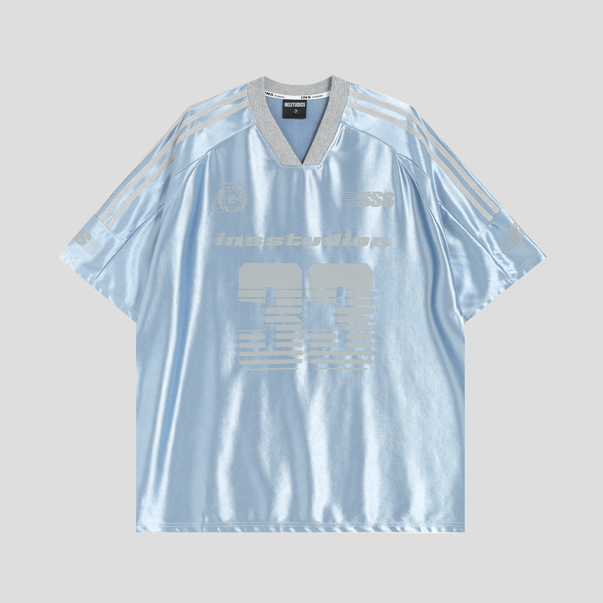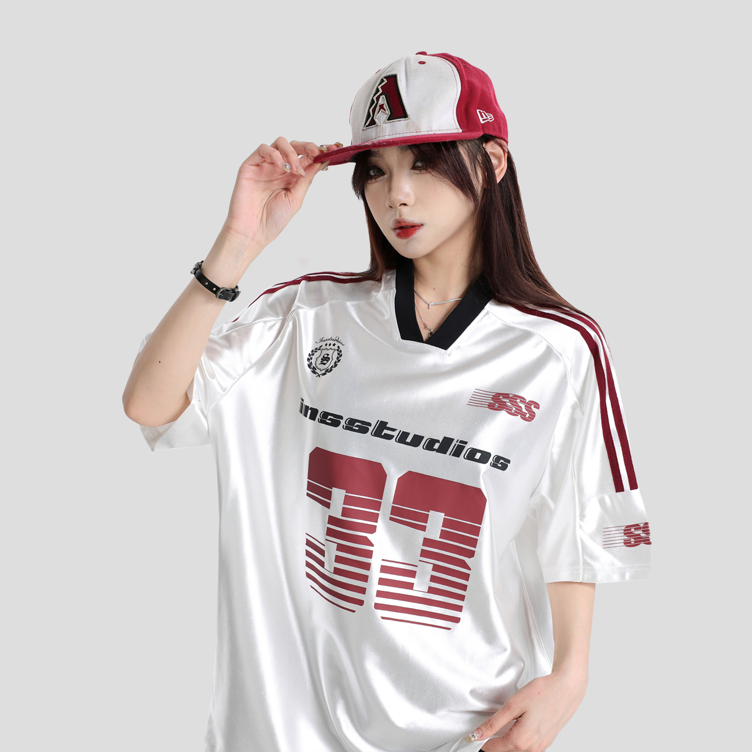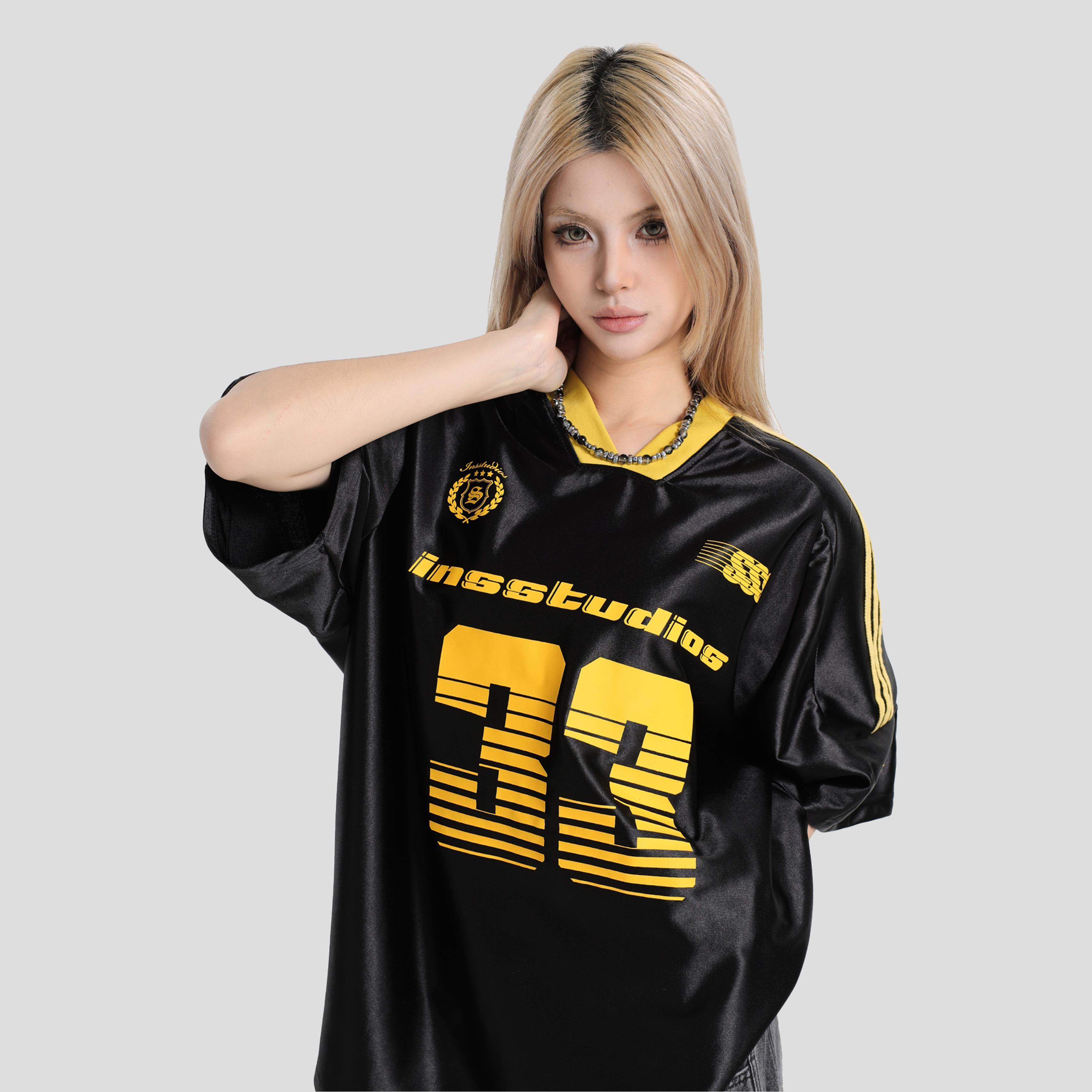 INSstudios 国潮牌情侣美式印花LOGO球衣V领冰球服运动短袖t恤男