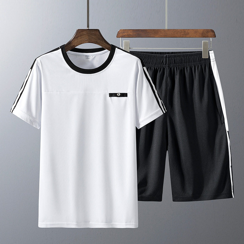 短裤两件套爸爸装T恤中老年休闲套装男短袖男士夏季