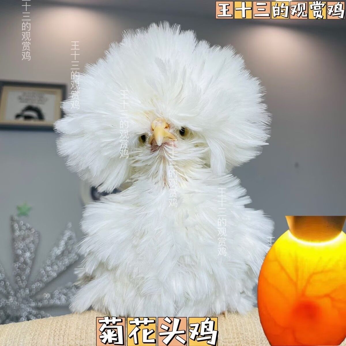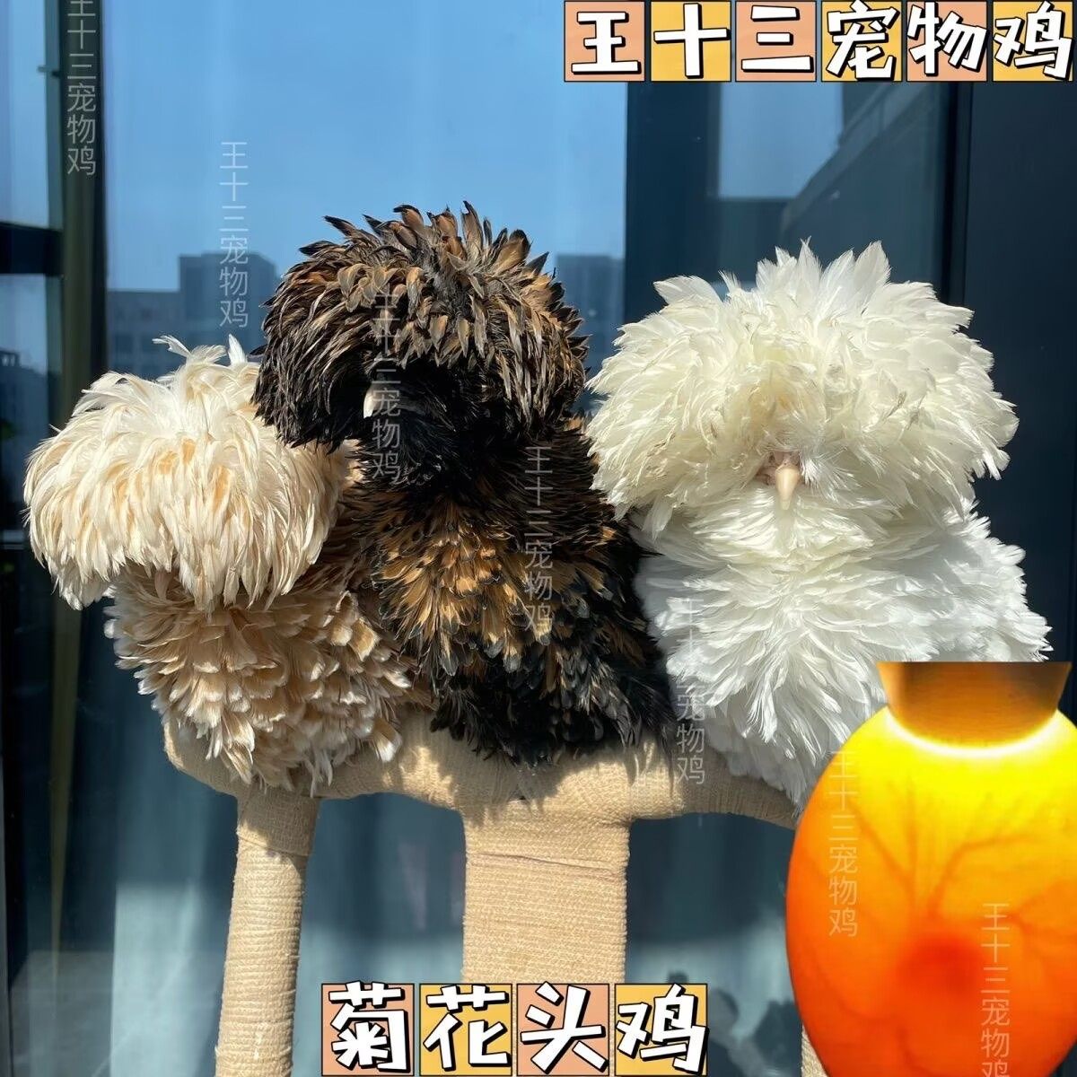 菊花头鸡苗翻毛帽子鸡种蛋可孵化观赏鸡受精蛋宠物鸡网红鸡活体