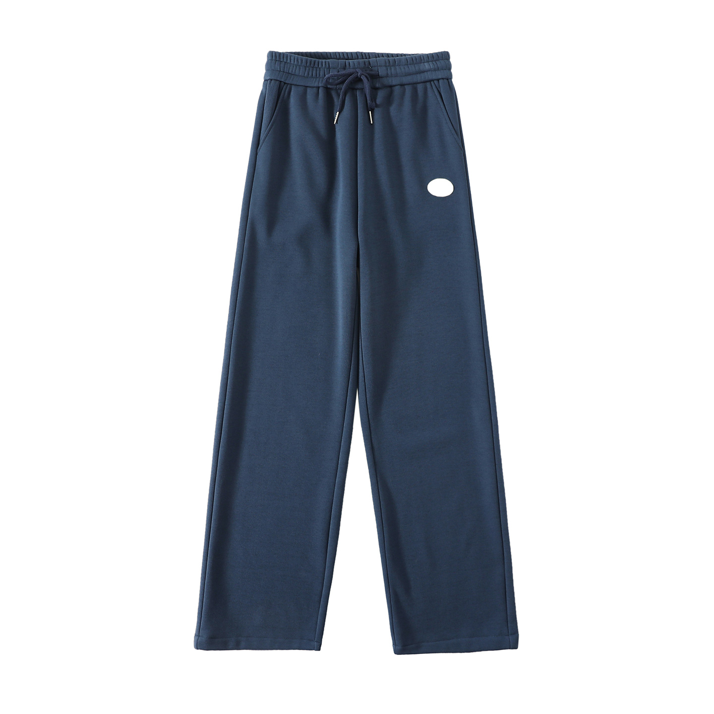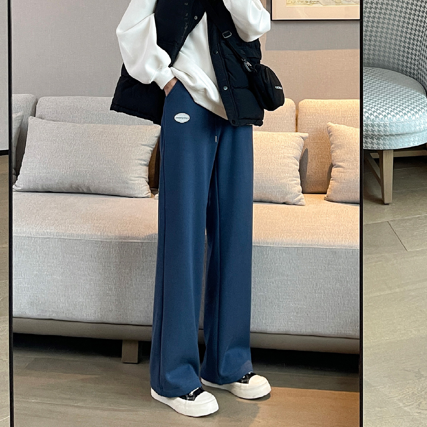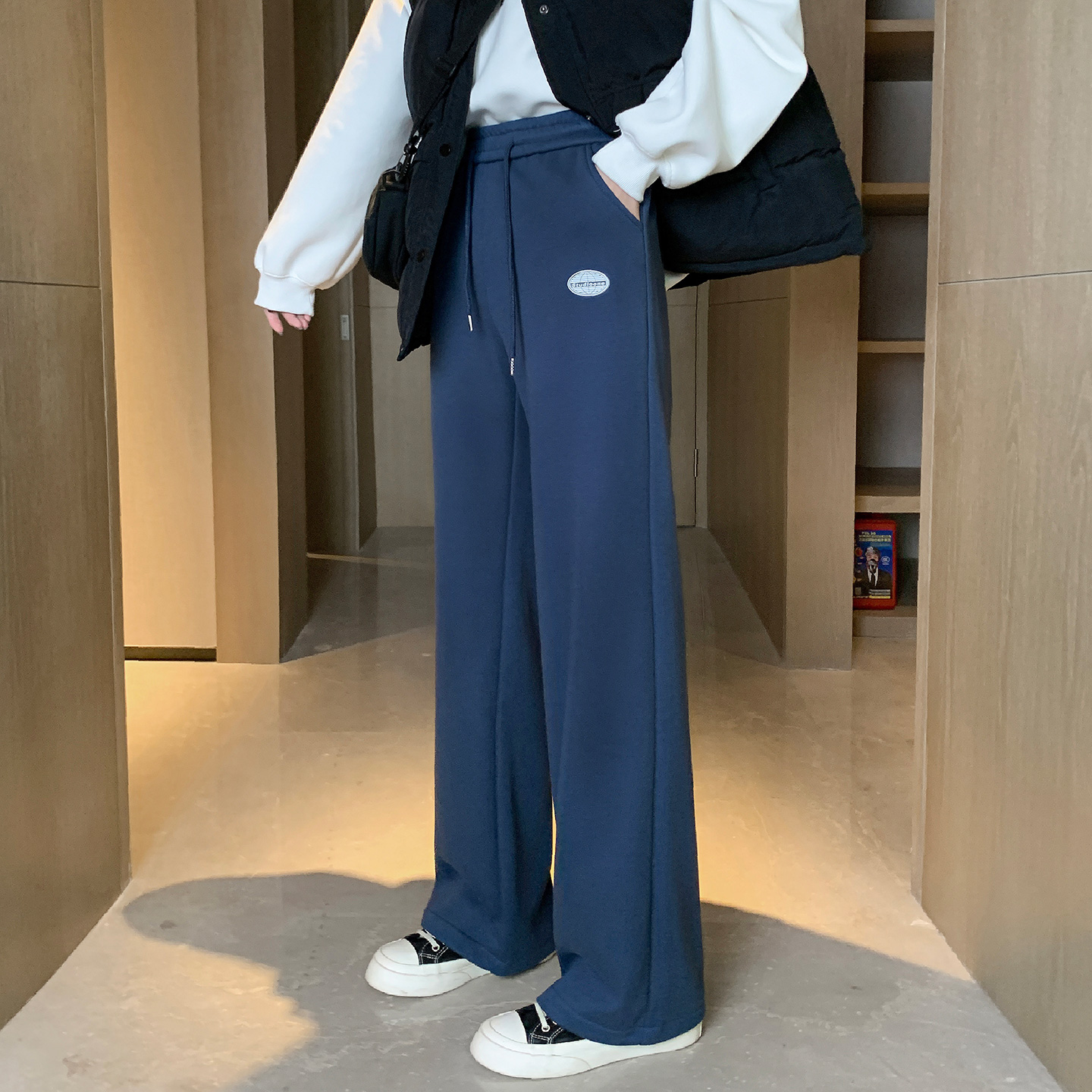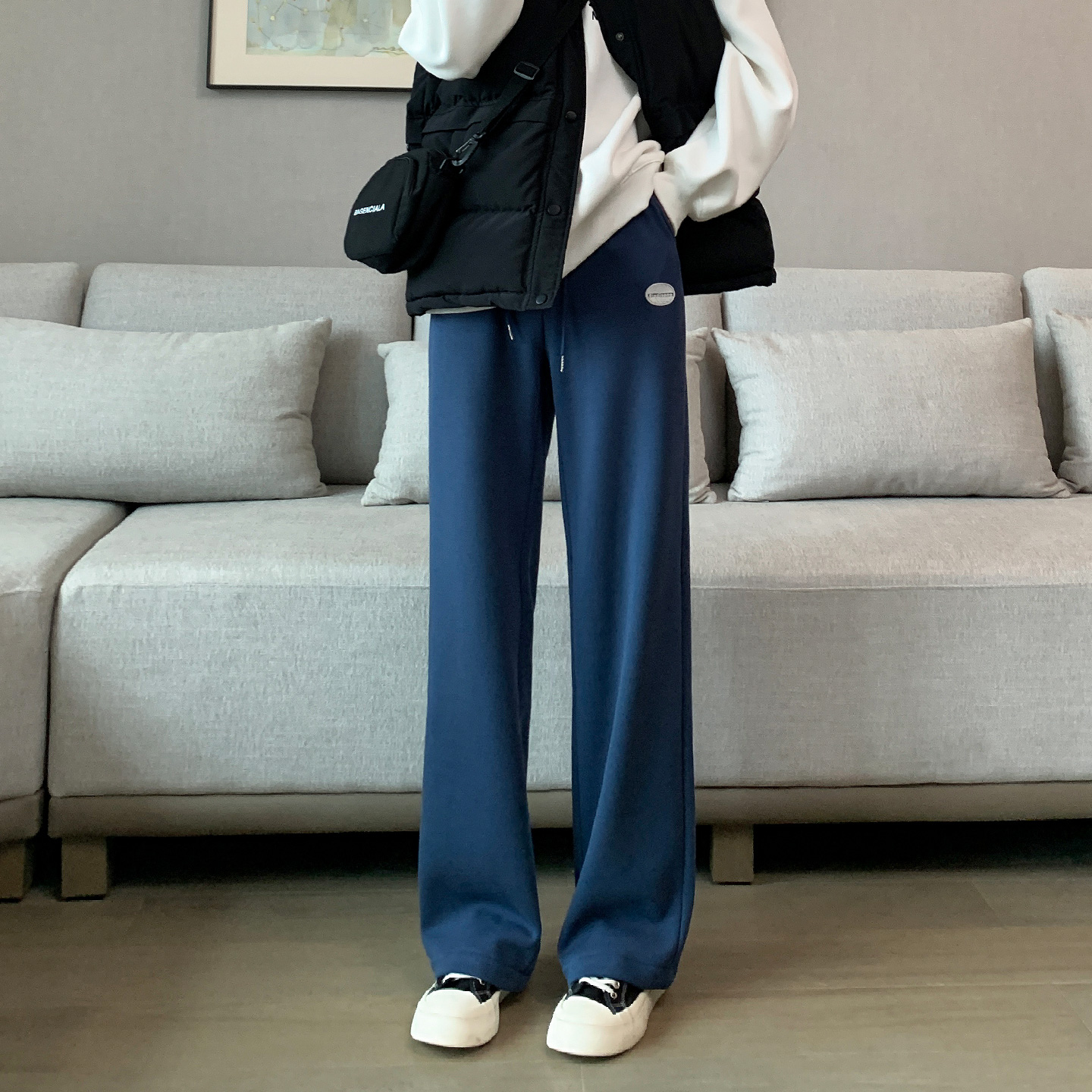阔腿运动裤女秋冬新款蓝色松紧高腰垂感显瘦休闲加绒保暖直筒裤子