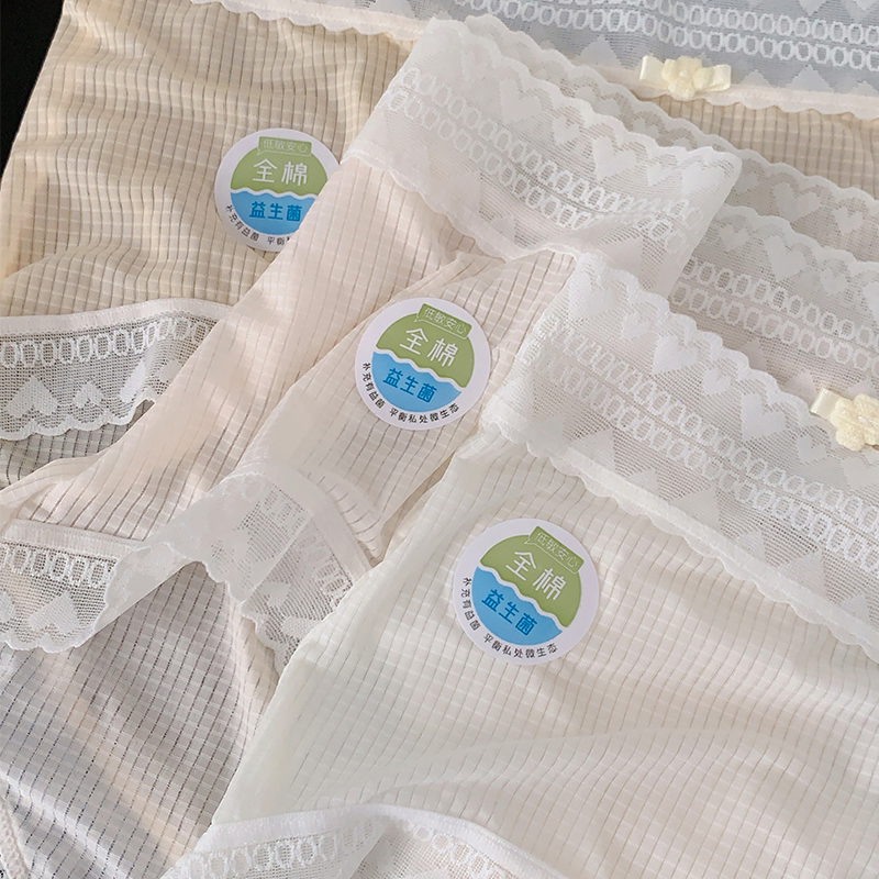 万里冰河。裸感冰丝女内裤全棉加长裆10A抑菌超薄透气夏季款蕾丝