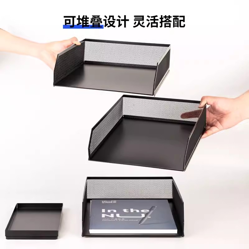 得力金属文件架办公桌置物架4层5层书架桌面文件框资料架文件栏