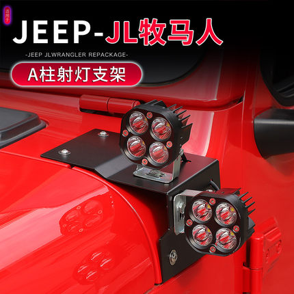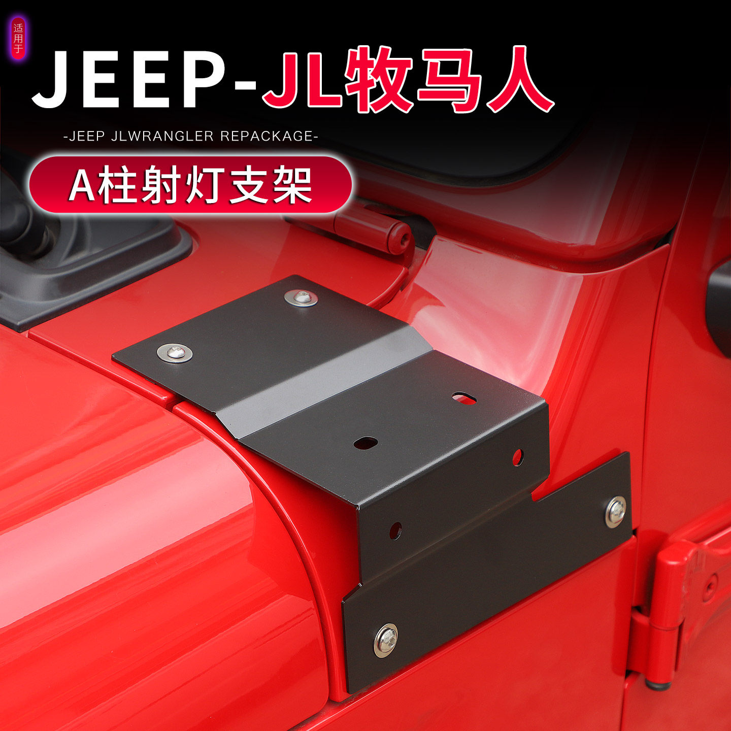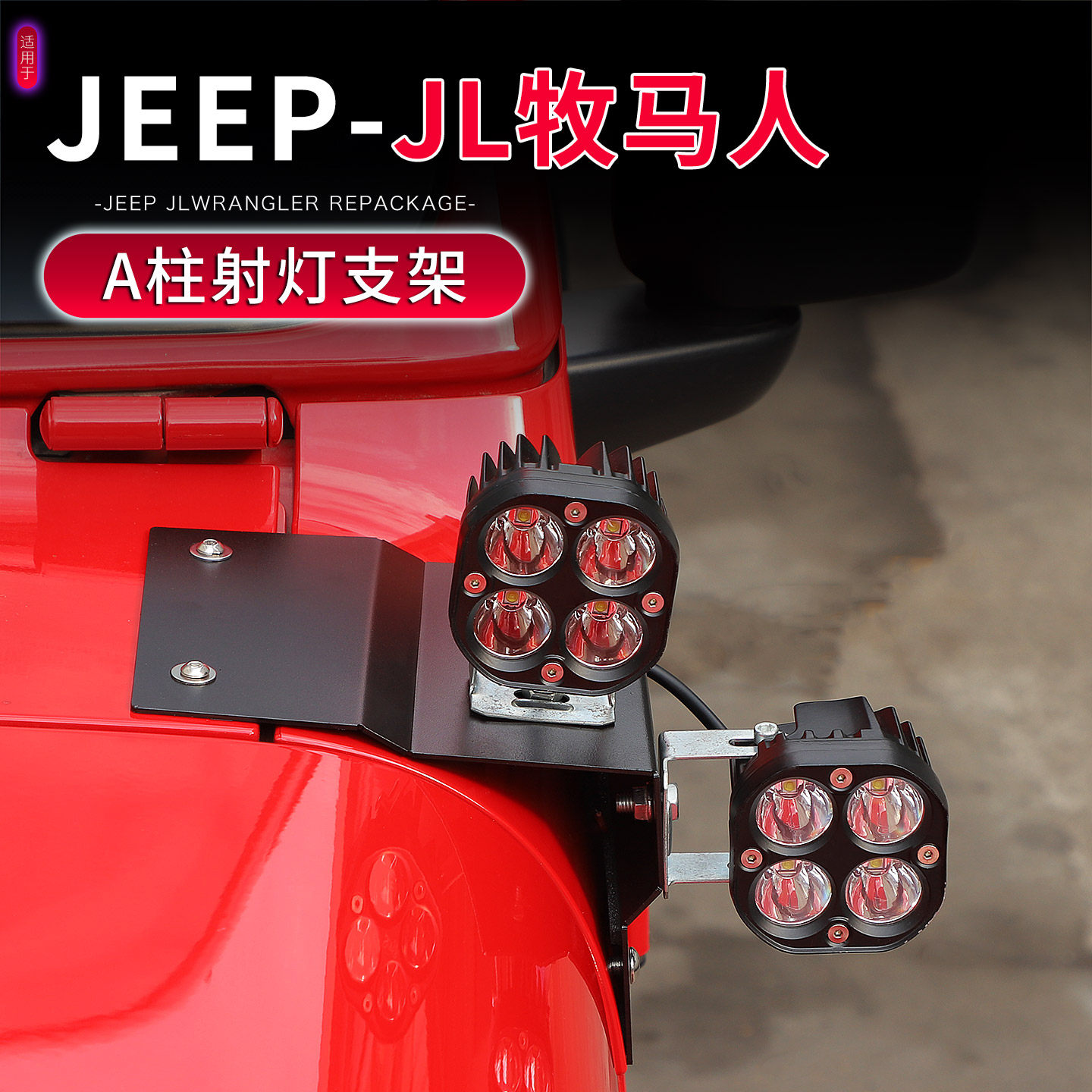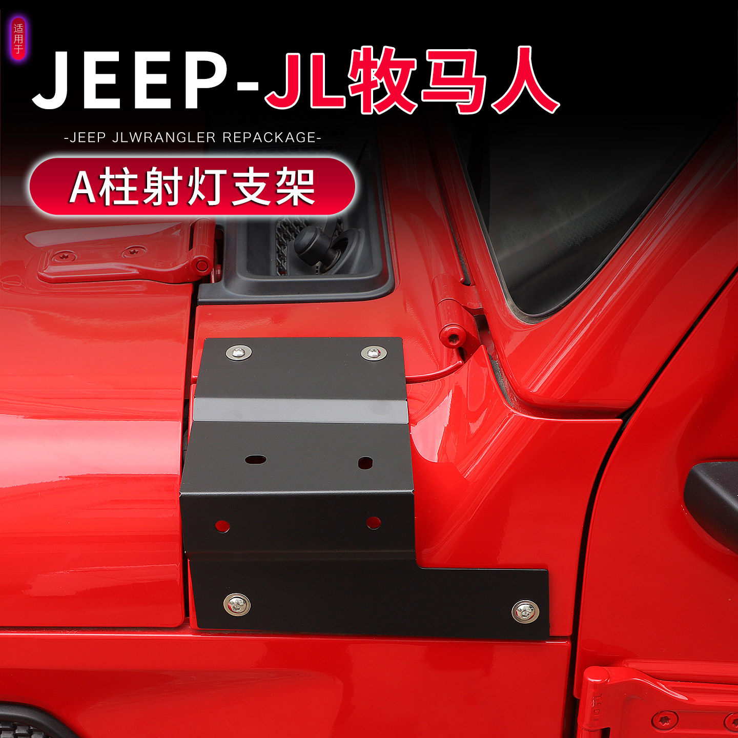 适用于18-25款牧马人JL改装件机盖A柱射灯支架加装探照灯底座越野