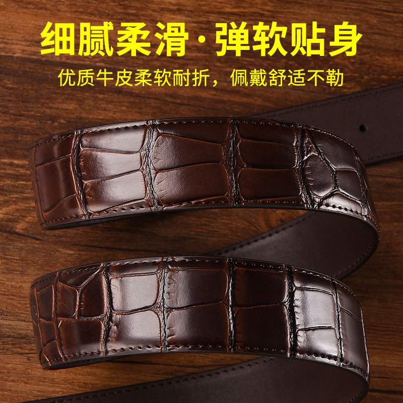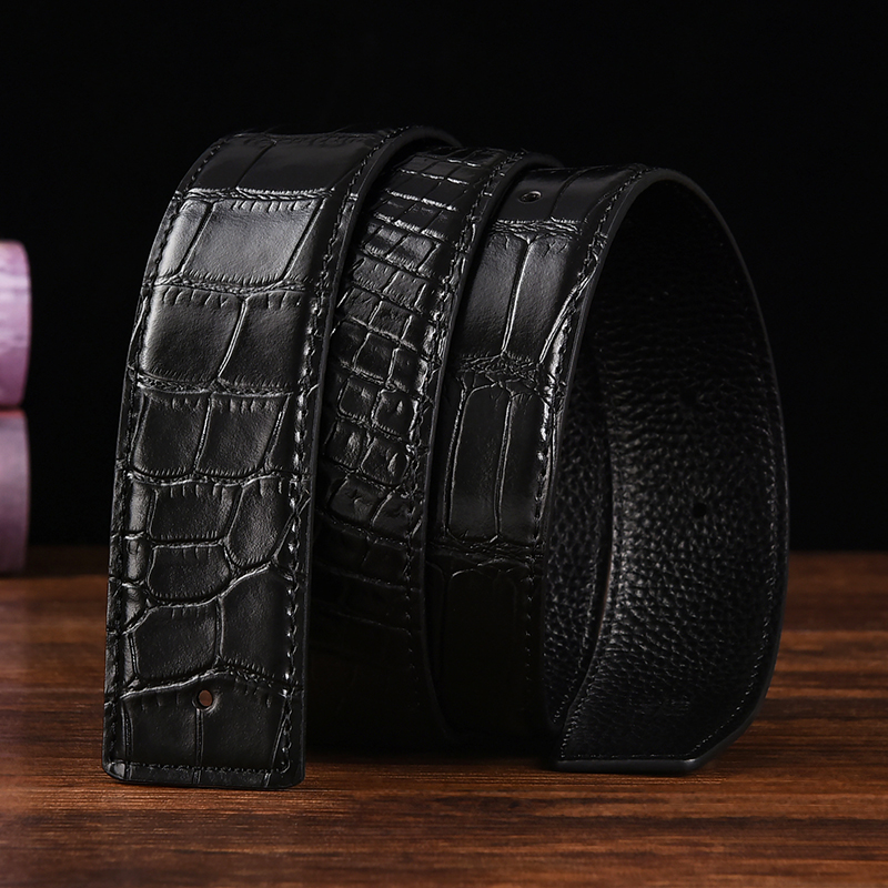 不带头腰带男真皮3.8头层牛皮鳄鱼纹无头皮带打眼3.3没扣裤带条