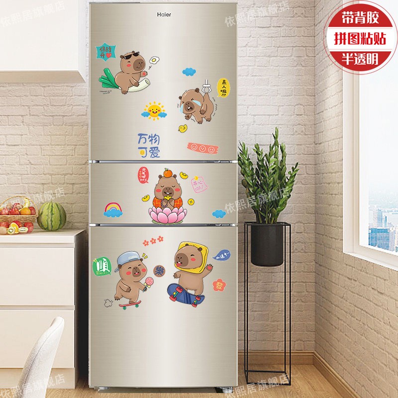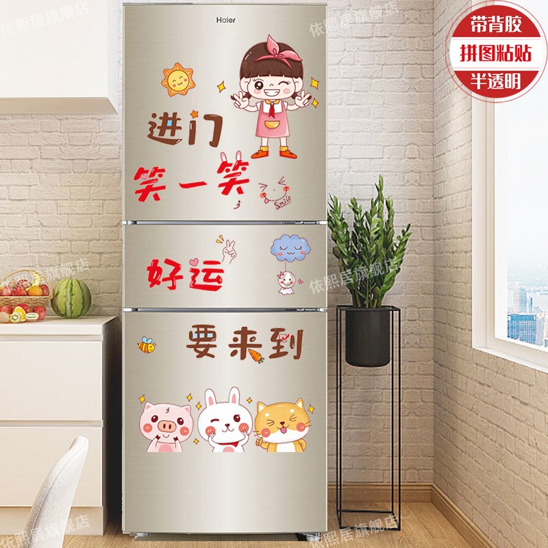 卡通三开门冰箱贴纸二门上下创意贴画厨房橱柜门装饰励志墙贴防水