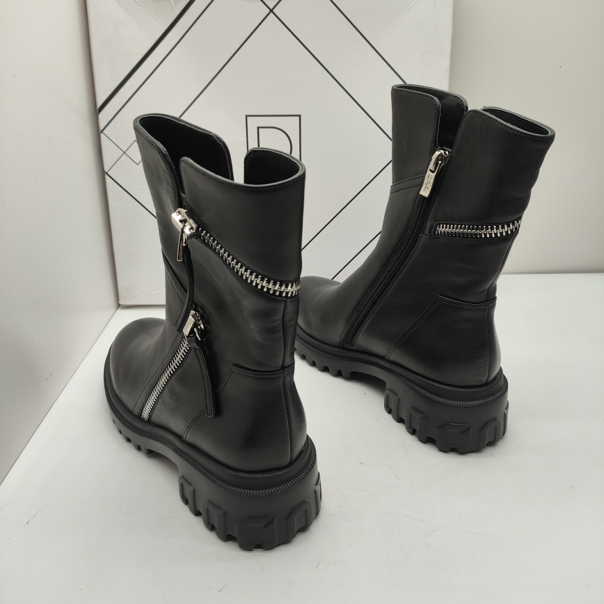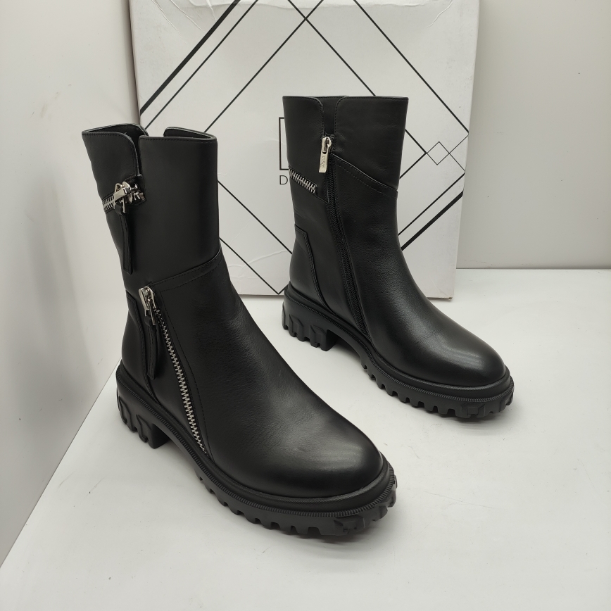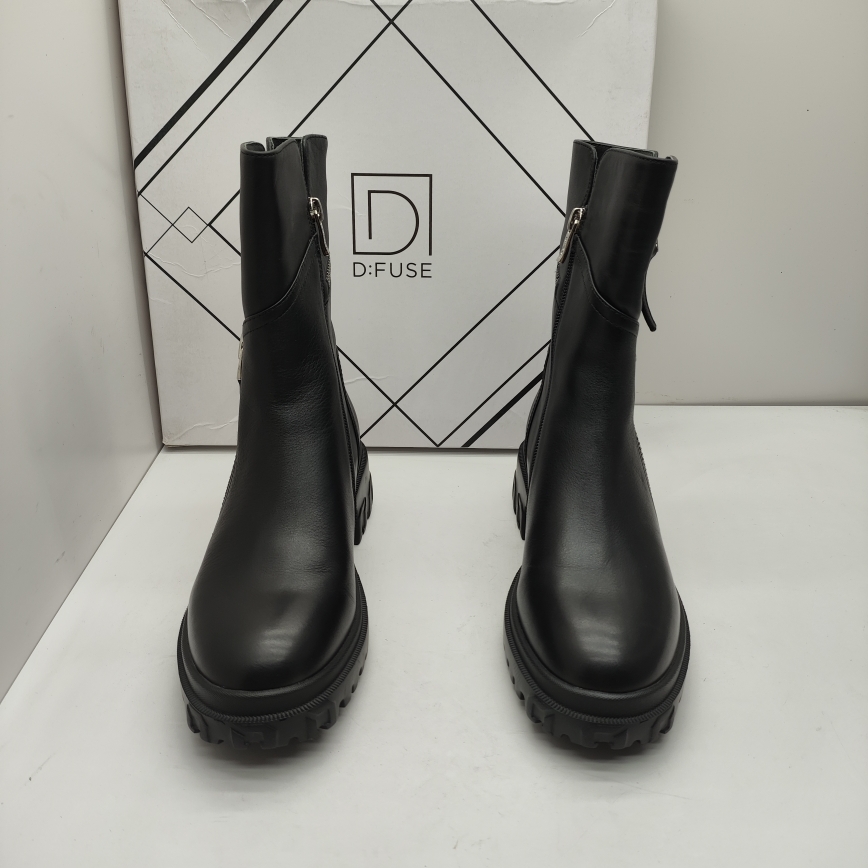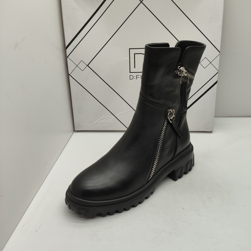 D:FUSE/迪芙斯断码撤柜秋季英伦真皮中跟圆头马丁靴侧拉链女短靴