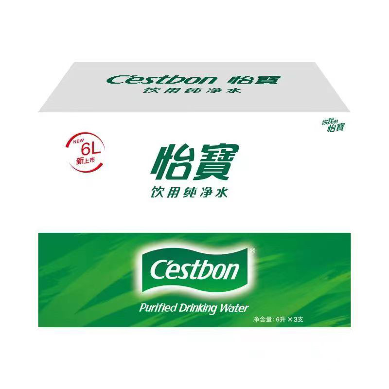 怡宝饮用水纯净水6L*3瓶非矿泉水运动家庭户外露营桶装水整箱包邮