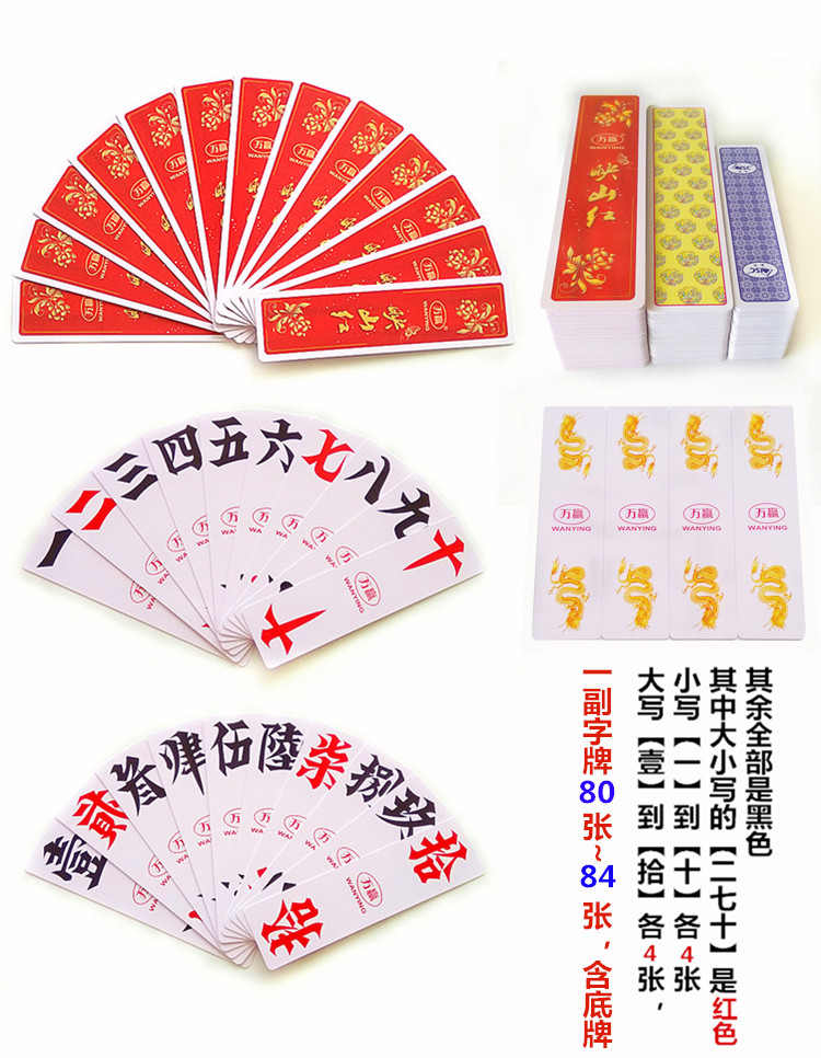 湖南字牌跑胡子 万赢映山红968 二七十塑料布纹牌 大号大尺寸大贰