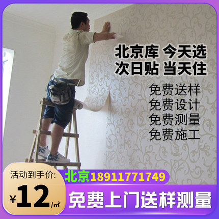 北京贴壁纸师傅包安装现代简约壁布卧室客厅无缝墙布全屋背景墙纸